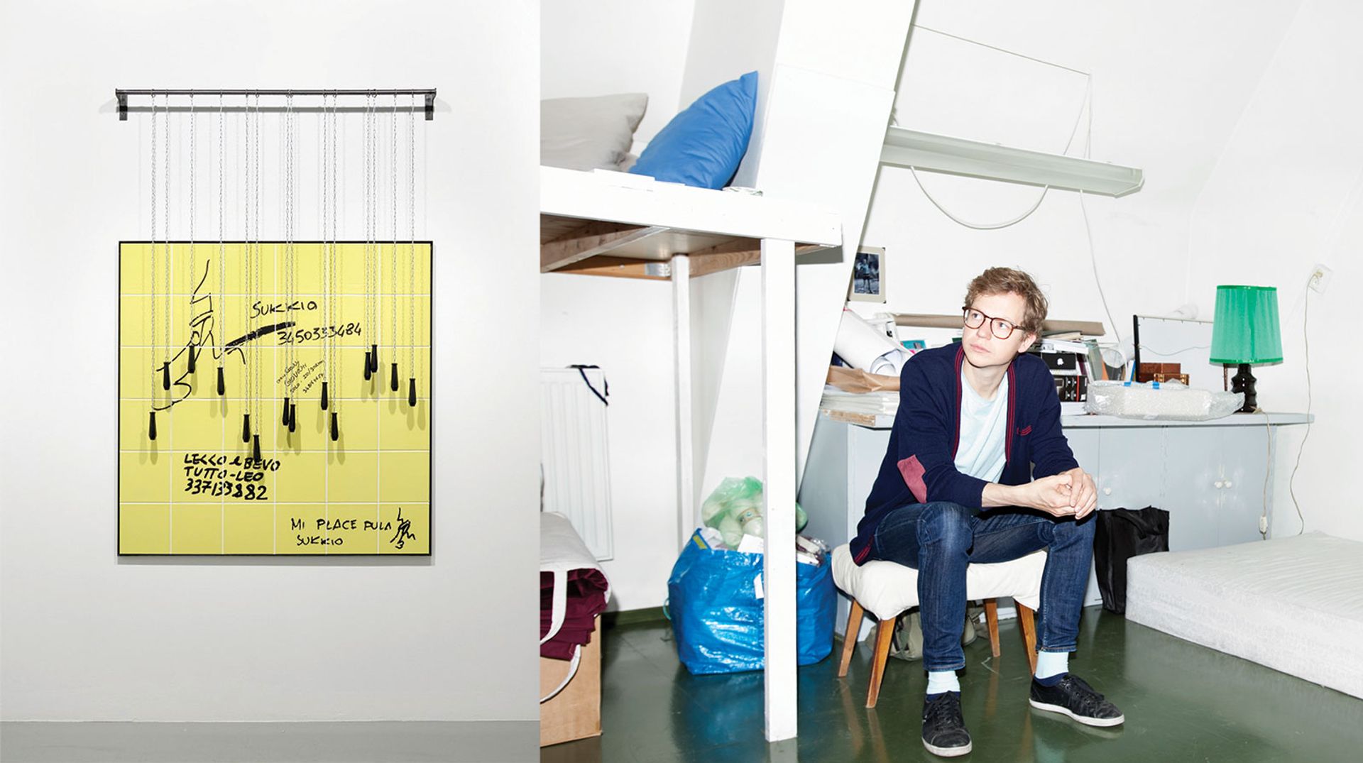 Jaanus Samma (b. 1982), showing with Temnikova & Kasela Gallery, Tallinn A PhD candidate at the Estonian Academy of the Arts, Jaanus Samma has conducted sociological fieldwork in Estonia and elsewhere in Europe that directly informs his art on gender, queer subculture and public space. Recently, that work has addressed the public restroom. “These are places where the boundary between public and personal can easily fade,” says Samma. Temnikova & Kasela Gallery is showing Flaminio Station I and II (2017), wall constructions fashioned from ceramic tiles and chain-suspended toilet plugs. Photo: Kristina Õllek