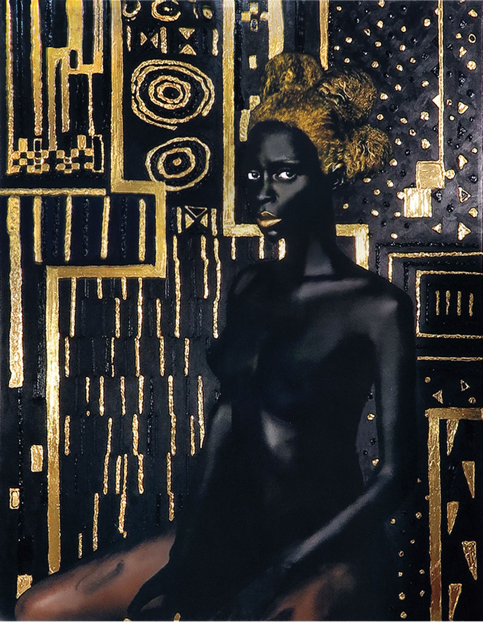 Lina Iris Viktor (b. 1987), showing with Mariane Ibrahim Gallery, Seattle. The Liberian-British painter and performer’s new works for the Armory are cited as one of the reasons she recently sued the hip hop performers Kendrick Lamar and SZA for copyright infringement, claiming their music video All the Stars, for the movie Black Panther, heavily copies her black and gold Constellation series. At the fair, Viktor is showing five new pieces in her signature colour scheme, including a translucent work (2018) suspended in the center of a Mashrabiya-style installation “to be viewed as both sculpture and painting”, she says. "I think in the future the works will become increasingly sculptural, and the spaces the work is presented in will become increasingly controlled to heighten the viewers experience. I want to start building my environment. What we are creating for Armory is a step in that direction." Above, Lina Iris Viktor, Constellation VI (2017-2018) Lina Iris Viktor