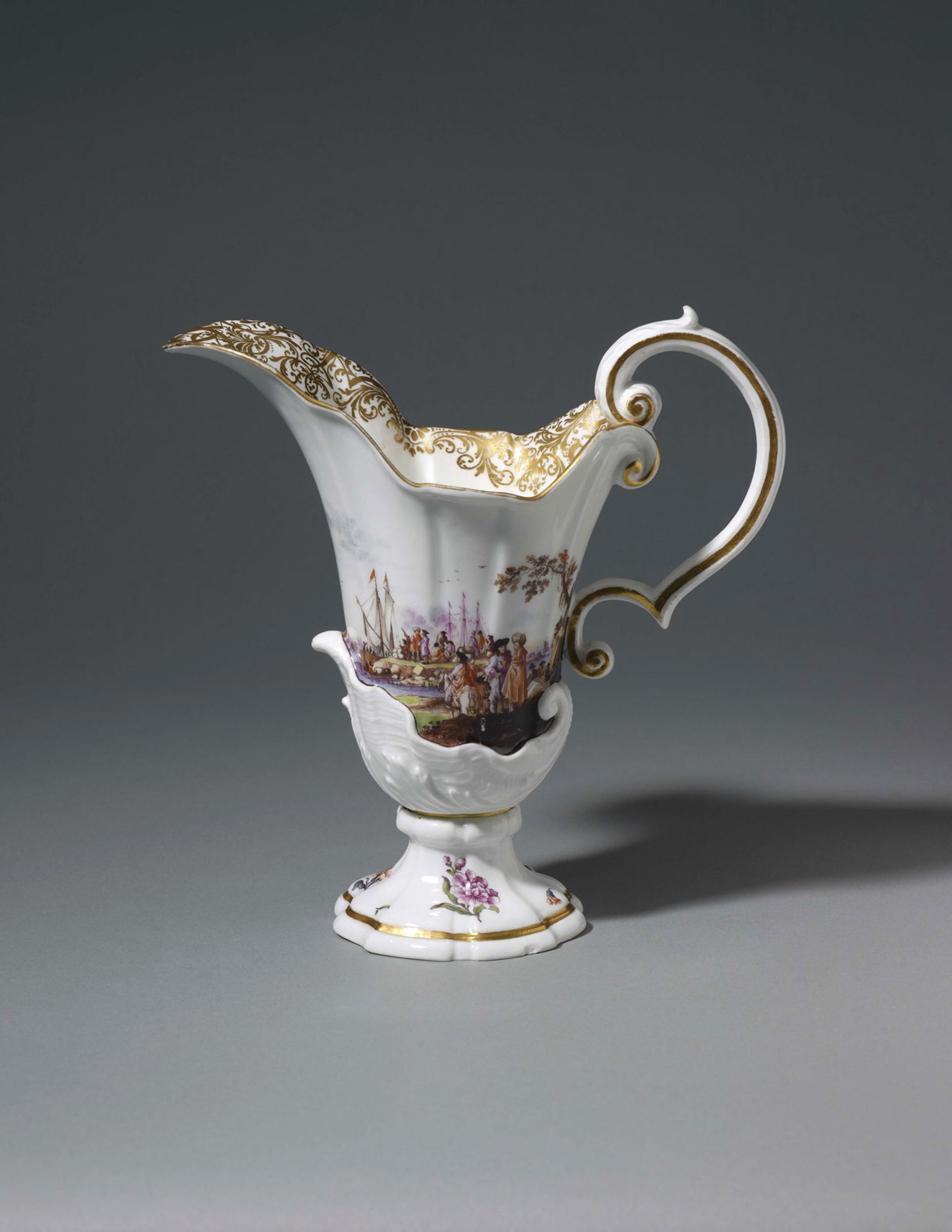 A Meissen ewer (around 1740-45) with a landscape scene, priced at £12,500 with Brian Haughton Gallery