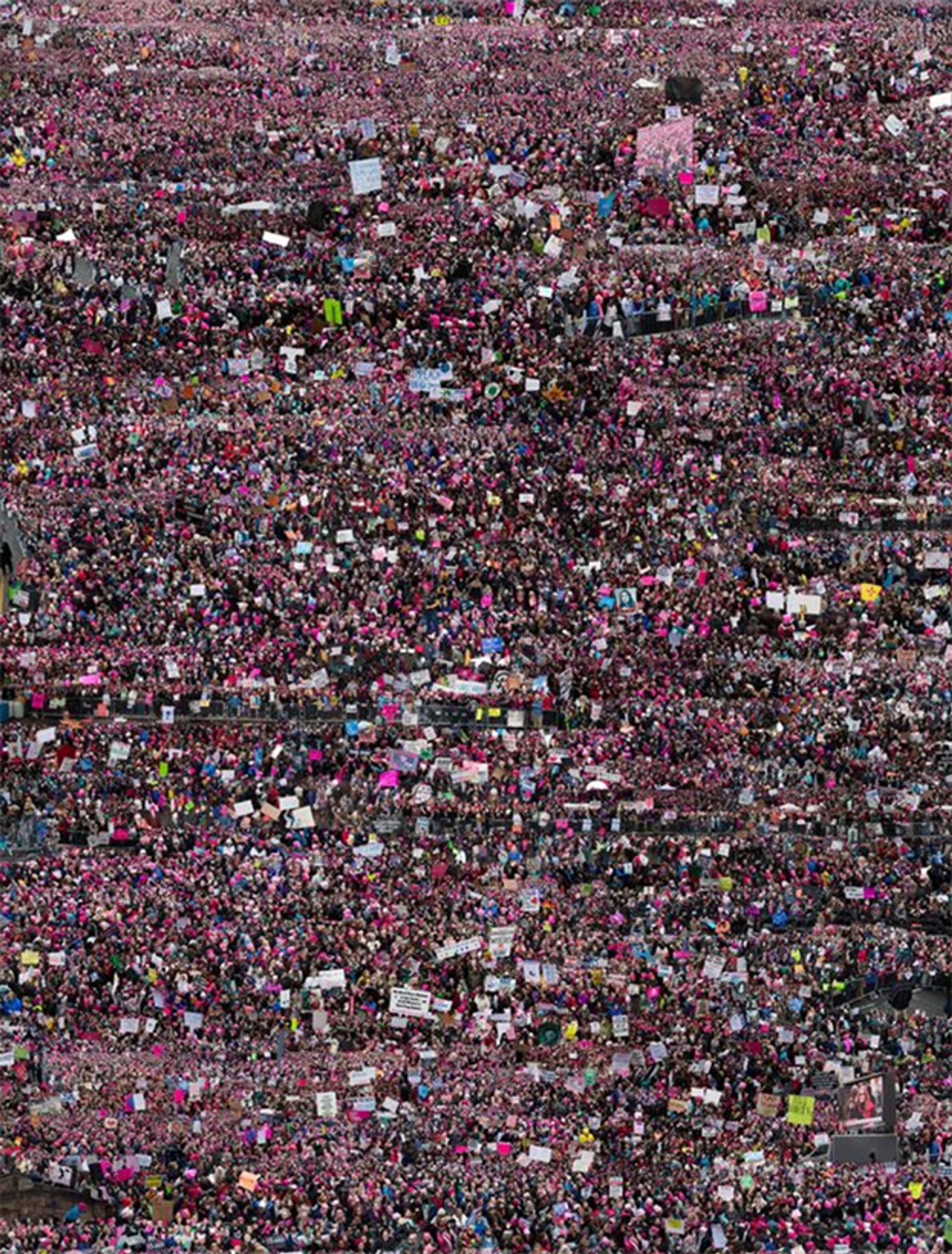 Garis and Hahn, of Los Angeles, is offering a series of three recent large-scale digital prints by the Brooklyn-based photographer Felix R. Cid that, at first glance, appear to be a single aerial photograph but actually comprise several amalgamated images that inflate the scale of recent demonstrations (the 2017 Women’s March, protests on Donald Trump’s immigration ban, a gay pride parade) and gatherings in the US. The works, ranging from $18,500 to $20,000, critique the age of “alternative facts” and social media, which has the power to distort truth.