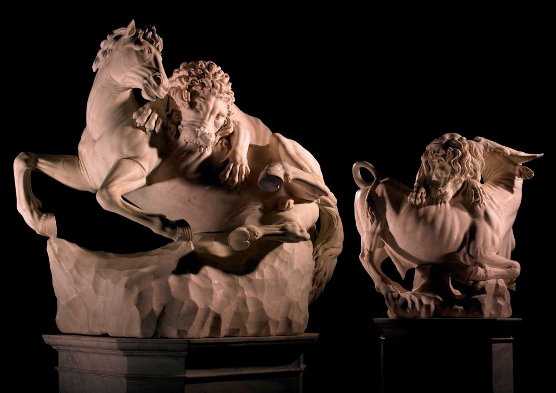 Pair of monumental marble lion groups attributed to Giovanni Battista Foggini (1652-1725) and his workshop Tomasso Brothers Fine Art