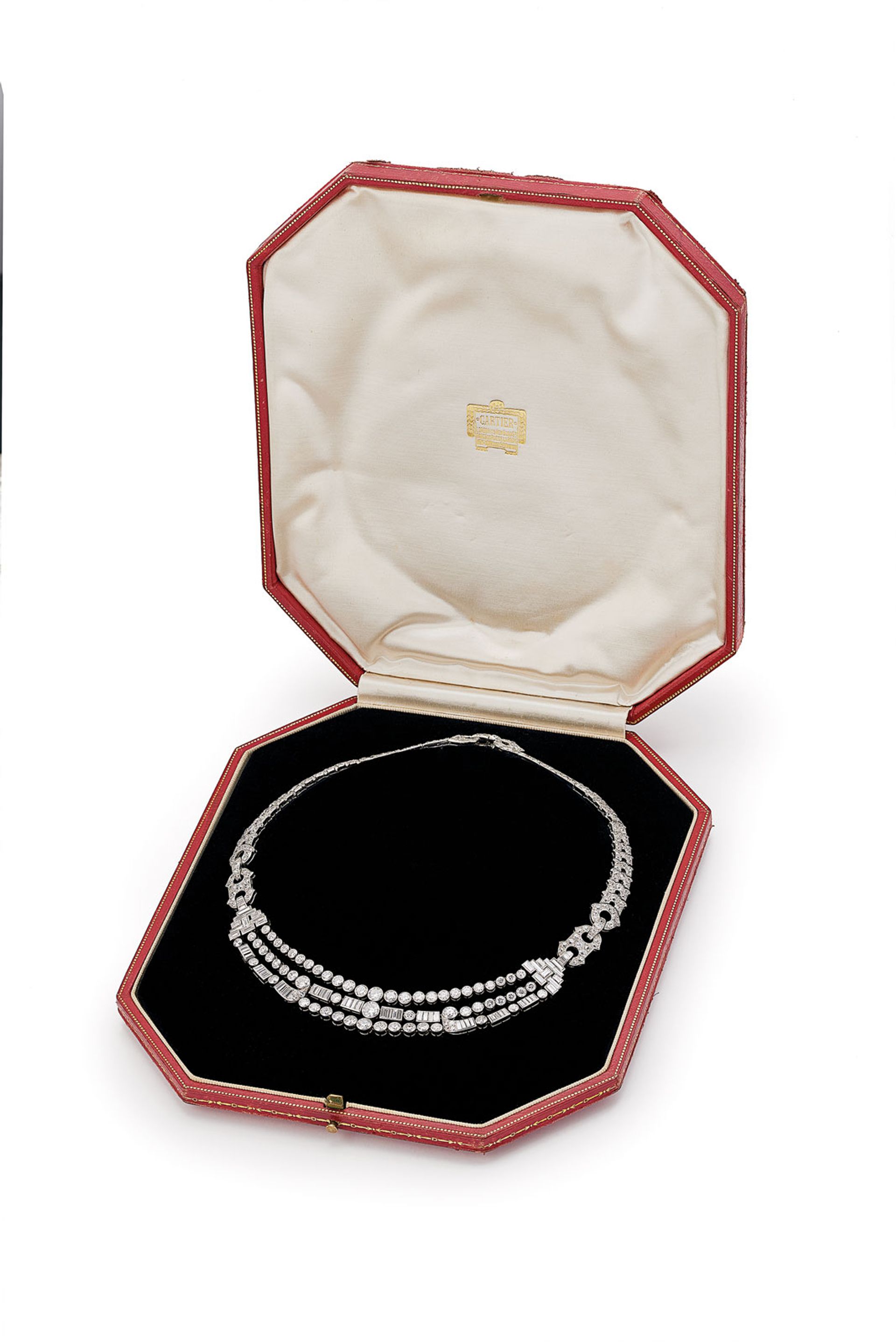 The Duchess of Devonshire’s Art Deco diamond necklace by Cartier (around 1925) is on Hancocks’ stand