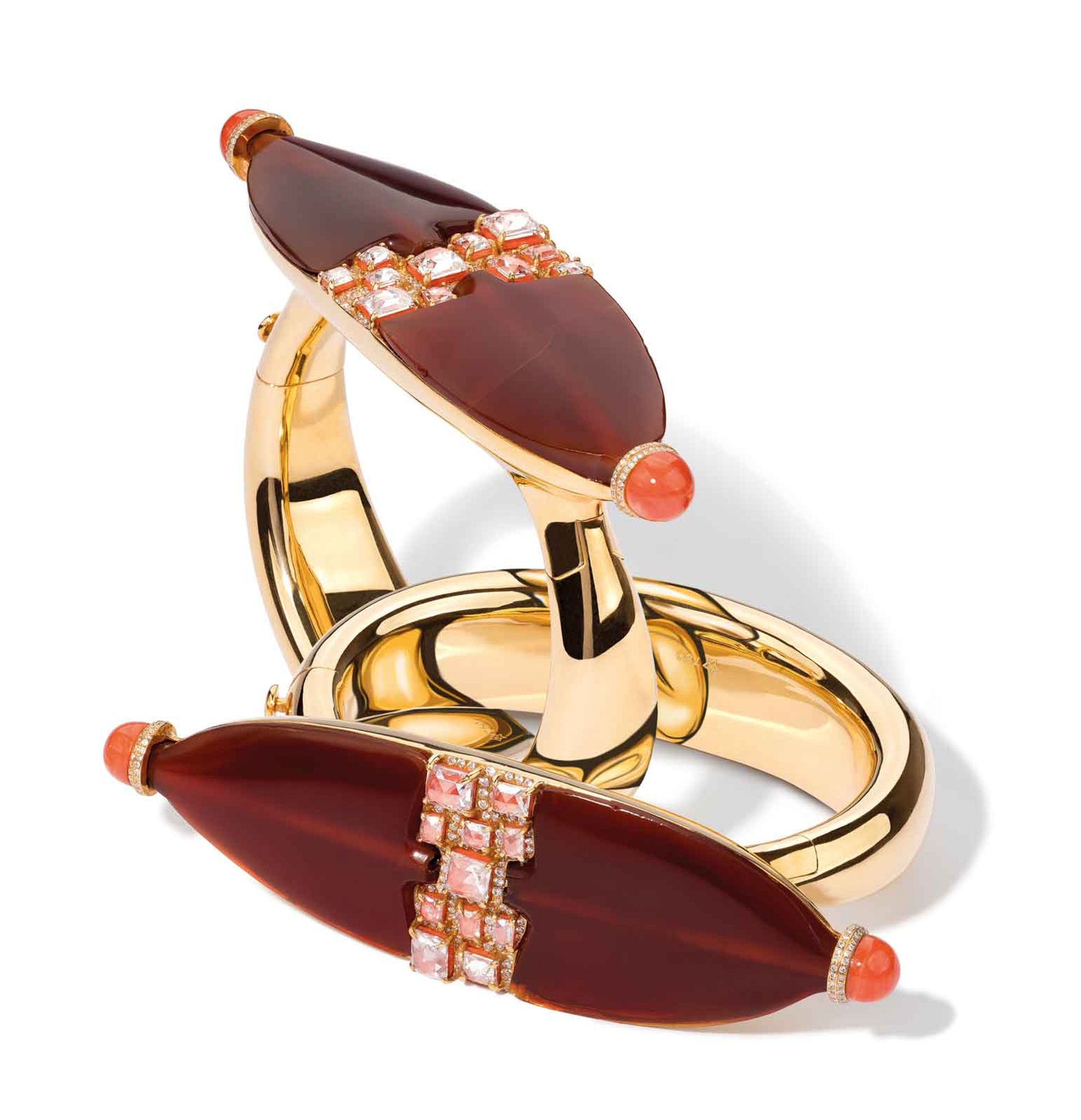 House of G: gold bangles set with carnelians, diamonds and precious stones