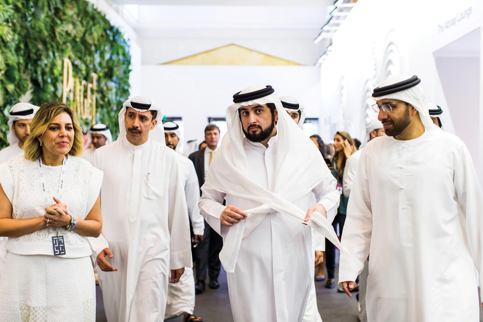 Myrna Ayad, director of Art Dubai (left), with Sheikh Ahmed bin Mohammed bin Rashid Al Maktoum (third left) Rogue Visuals FZ LLE 2018-Christopher Pike, all rights reserved