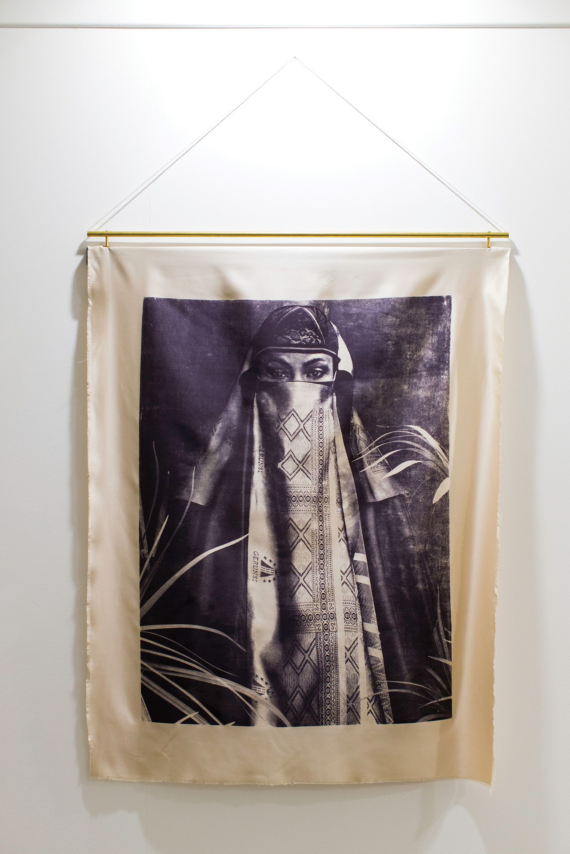Deeply attuned to the identity of otherness, Zohra Opoku’s practice is dedicated to investigating the politics of a hybrid identity. She is a German-Ghanaian artist who uses print and alternative photo processing methods, as well as textile and design techniques, to create works from various pieces of found material such as fabric and wood. During her time in Dubai, she has continued researching and working on her current series Harmattan Tales, which began in Ghana in October 2017. It investigates the layers of self as well as the prism of historical dialogues and the meaning of national identity. More specifically, she focuses on religious dress codes within Islam. “[The series] deals with the [in]visibility of the female body by focusing on the politics and aesthetics of Muslim dress codes, which is for me both stunning and disruptive,” she says. “The notion of being completely veiled in modern life, where practicality reigns, is an intriguing juxtaposition.” She is excited to be experimenting with urban symbolism and the colour codes of the UAE, such as the desert tones and the pure black of the hijabs.