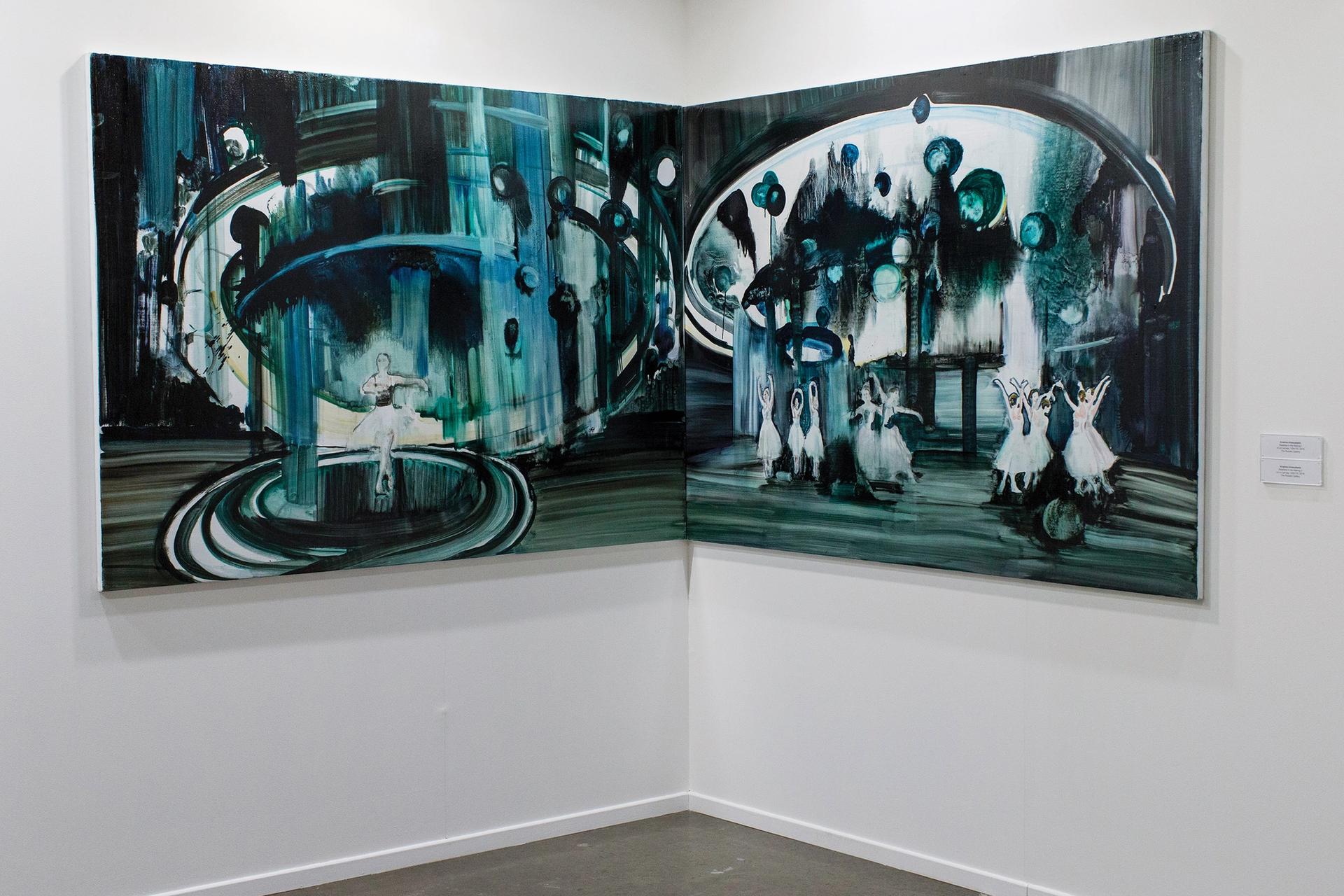The fragmentary and deeply gestural nature of Alisauskaite’s compositions depict the multilayered nature of reality. She describes her work as accessing deep-seated emotions that connect all of humanity. She is interested in the unseen, bringing to the fore what exists on the periphery and giving prominence to otherwise insignificant details. Part of a young generation of Lithuanian painters, she has visited Dubai before and has had work exhibited at Art Dubai, but she expects that the experience of living in the UAE will expand her perception and enrich her practice. For her residency, she has created a diptych filled with large spherical forms reminiscent of cosmic bodies, which reflect her interest in the metaphysical dimension as well as what she calls “the performance of life”. She is also showing a series of smaller portraits built up from details from her new surroundings. “The main theme of my artistic pursuits is to explore the less tangible experiences—feelings, moods, dreams and subconscious images—that exist beyond the material reality,” Alisauskaite says. “I am trying to draw attention to the nuances of human existence that we hardly notice.”
