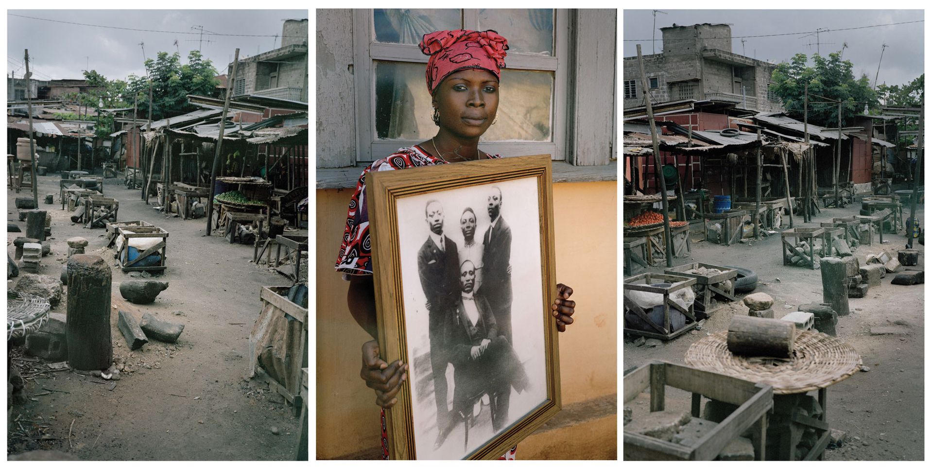 Photographic triptychs by the Beninese artist Leonce Raphael Agbodjélou comment on the Code Noir, the decree governing the French colonial administration’s treatment of slaves in West Africa, while paintings by the Afro-Brazilian artist Arjan Martins deal with slave ships and the Middle Passage, the transatlantic crossing from West Africa to America.