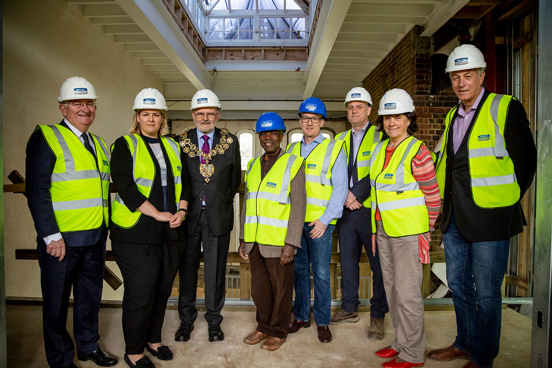 The ceremonials were preceded by hard hat tours from the Goldsmiths CCA gallery director Sarah McCrory and the university’s head of the art department, Richard Noble, offering an early preview of the space. The £4.2 million centre is being converted from the plant works and water tanks of a former Victorian swimming baths by the London-based collective Assemble, who won the Turner Prize in 2015.