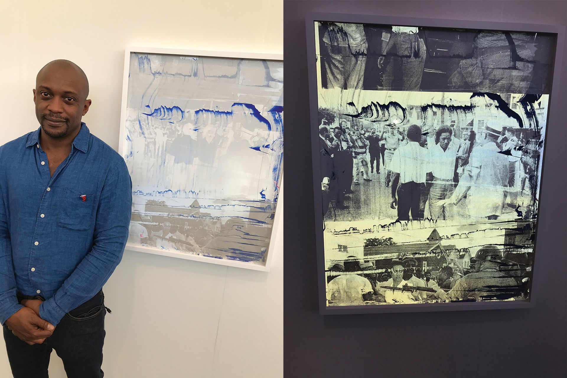 The US artist Hank Willis Thomas was spotted telling visitors at Jack Shainman’s stand that his work, I don’t remember them walking two steps behind anybody (blue tidal wave) (2018), needs to be seen in a special light—one that is typically verboten for art. The retro-reflective piece is activated by flash photography. Snap-happy fair-goers can access its hidden content—the civil rights leader Gloria Richardson brushing off a National Guardsman during a 1963 demonstration—using their mobile phones. “It’s like seeing history in a flash,” commented one impressed onlooker. Cue shudders from every museum warden tired of telling visitors “no flash photography”.