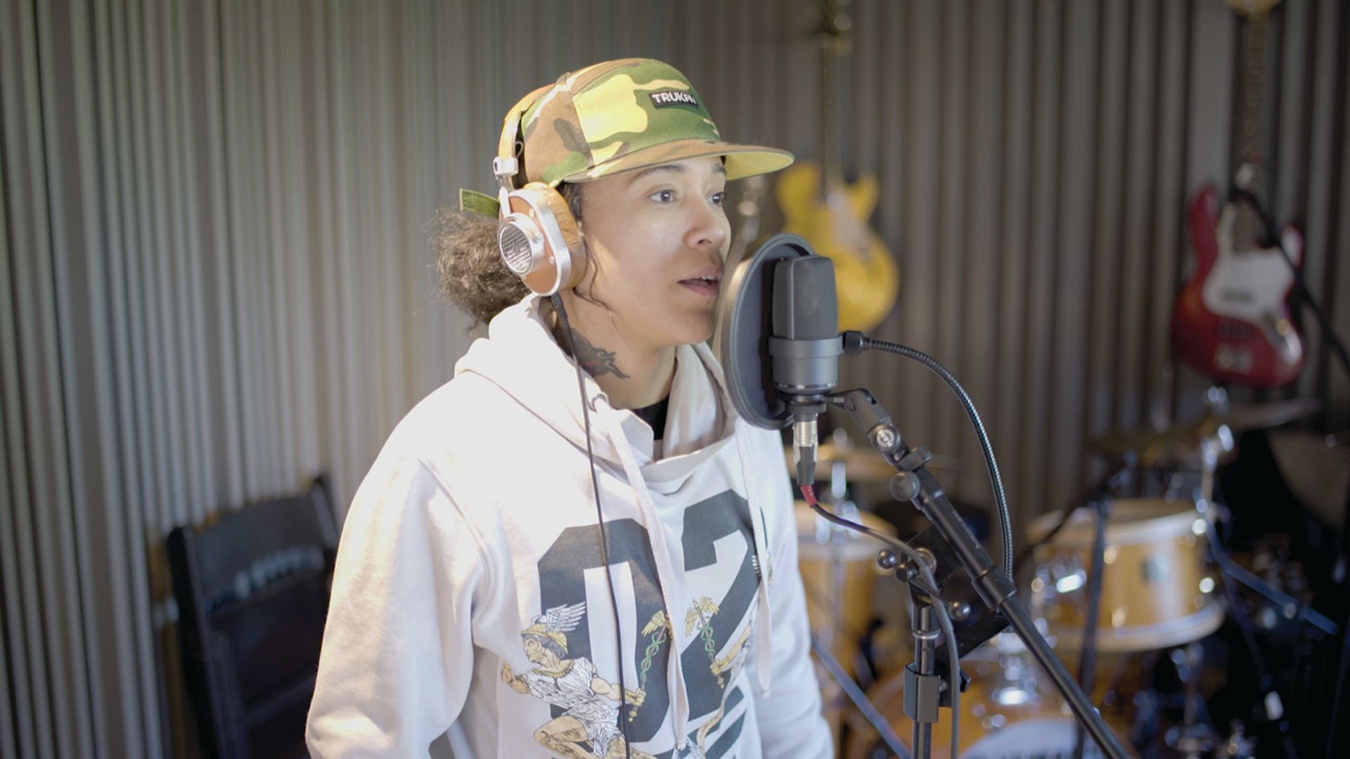 Vocalist Cinthia Candelaria during a project recording session in NYC Photo: César Martínez