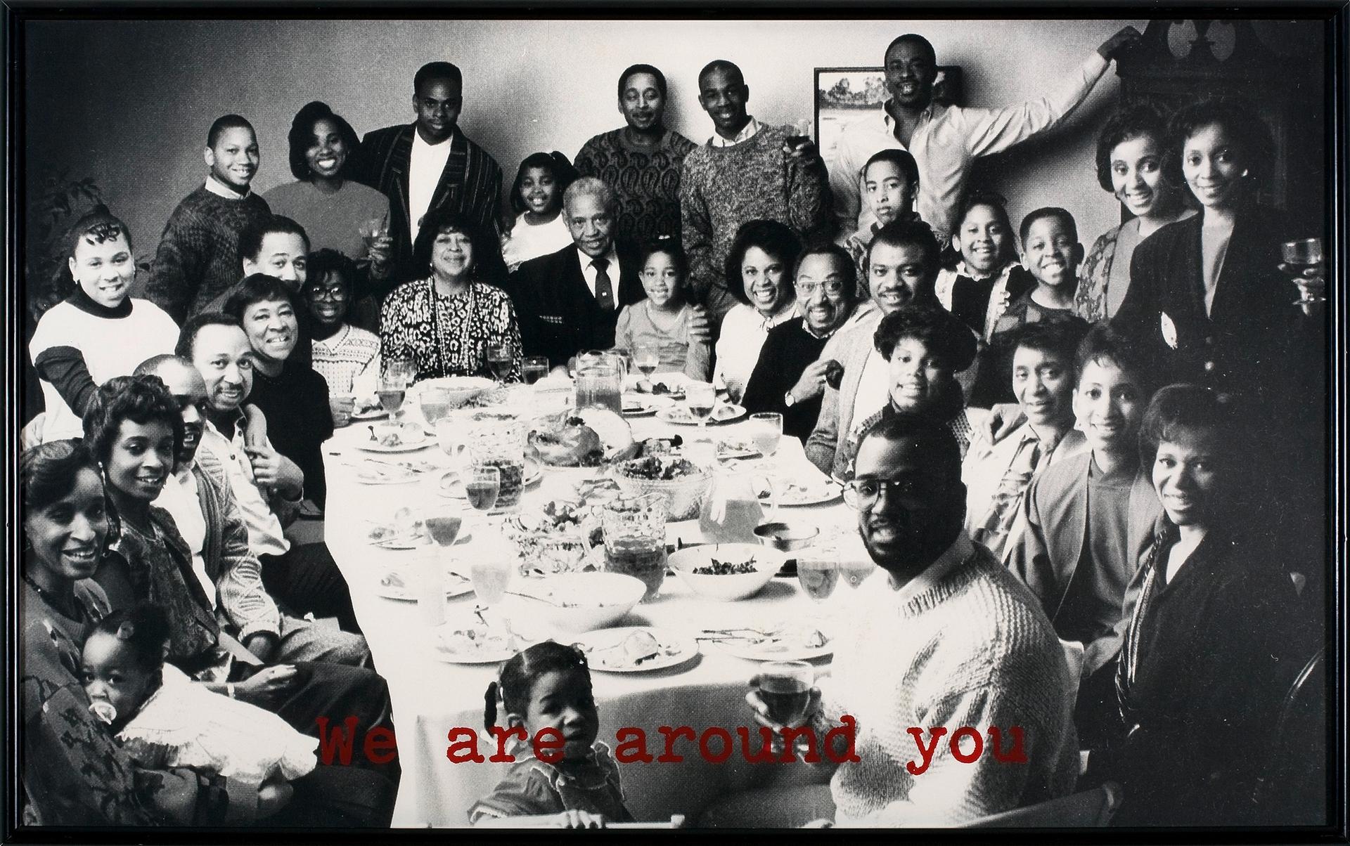 A related work, Cornered (1988), explores racial ambiguity through a lecture format. Piper speaks on a video monitor that is barred by an overturned table and flanked by her father’s two birth certificates. One identifies his race as white, and the other as the outdated term octoroon. Piper speaks to the audience in a measured, professorial tone: “I’m black. Now, let’s deal with this social fact, and the fact of my stating it, together.”