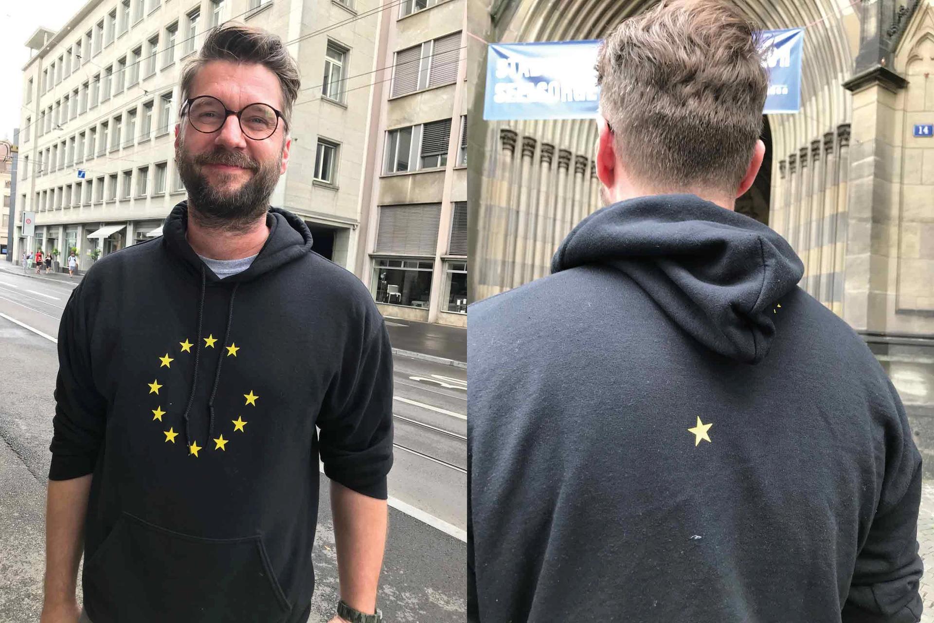 Parcour curator Samuel Leuenberger sporting a Brexit hoodie Gareth Harris