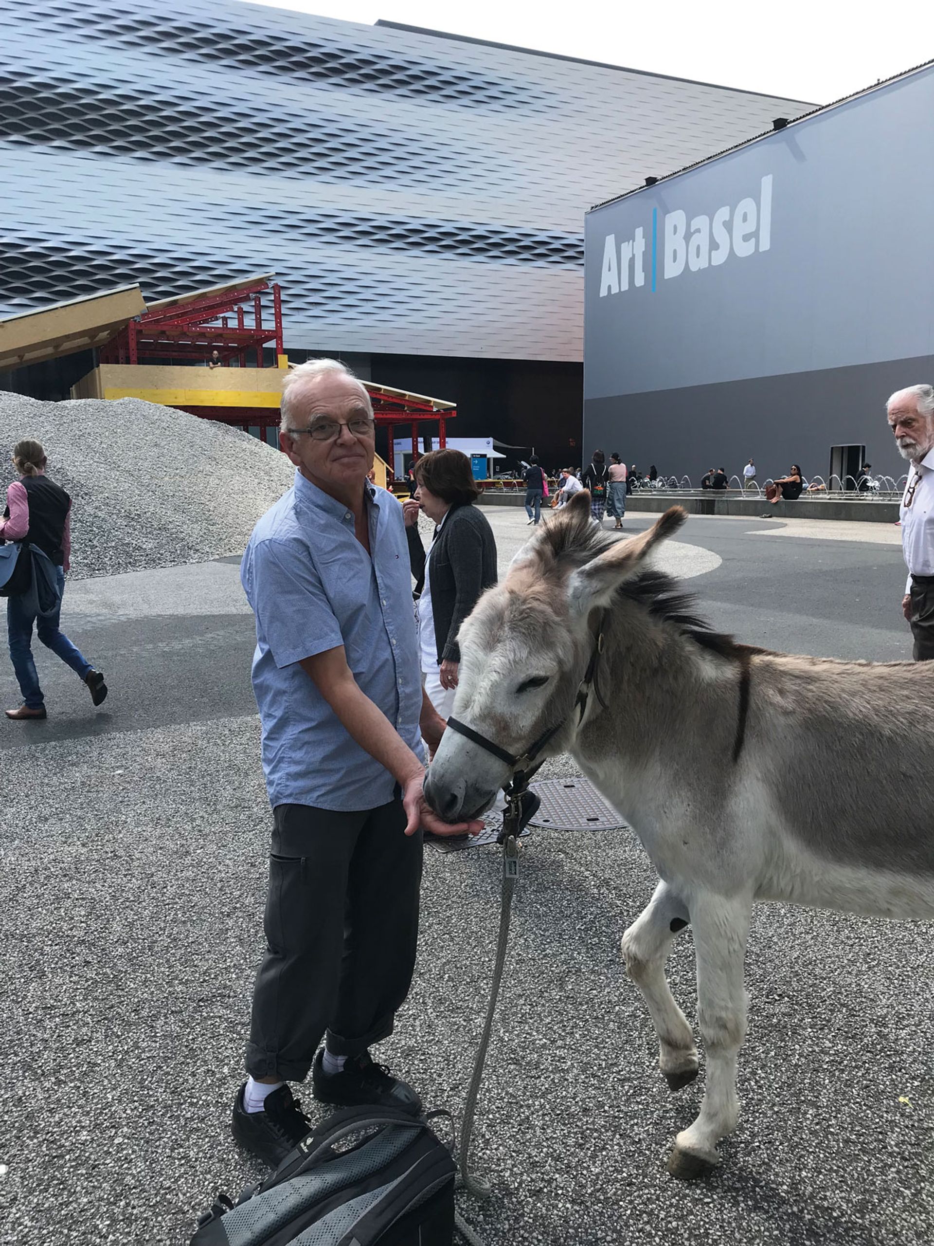 Some people say that the art world is full of asses but one on the Messeplatz made us do a double take. Every year, retired teacher Ernst König and his pet donkey Charlie travel to Basel from Germany for the fair. Has he been to Art Basel yet? “No way, they won’t let us in,” König says. But security seems somewhat more relaxed at the inaugural edition of Frame, where staff entertained the loveable beast while his owner hoofed it around the fair.
