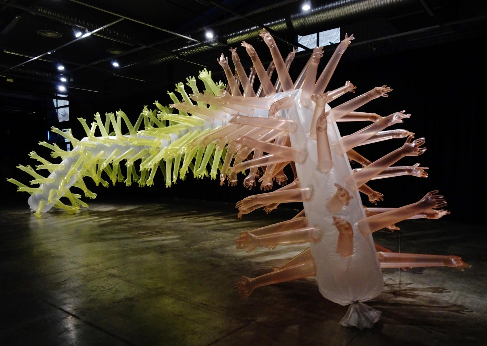 ArtVilnius also included a section devoted to large-scale, non-commercial projects. Every year a crowd-pleasing highlight is an installation by the Stuttgart-based, Lithuanian-born kinetic artist Kestutis Svirneli. A many-armed inflatable, resembling a giant centipede, was his 2018 contribution.