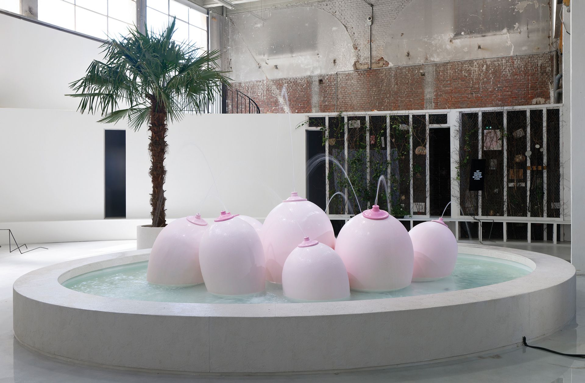 LAURE PROUVOST: I made a performance a few years ago with Alex Cecchetti in the allotment garden behind the Palais de Tokyo, so I knew that the space was connected to the garden through a door. It’s a hot summer show, with global warming, the expansion of the woman artist and the [increasing role of women] generally in Western society. Most of the objects were produced for this exhibition. We had this idea of nature taking over and growing feminine things like breasts. The village square has this extreme, feminine symbolism—a surreal, slightly grotesque fountain of nine boobs, called We Will Feed You.