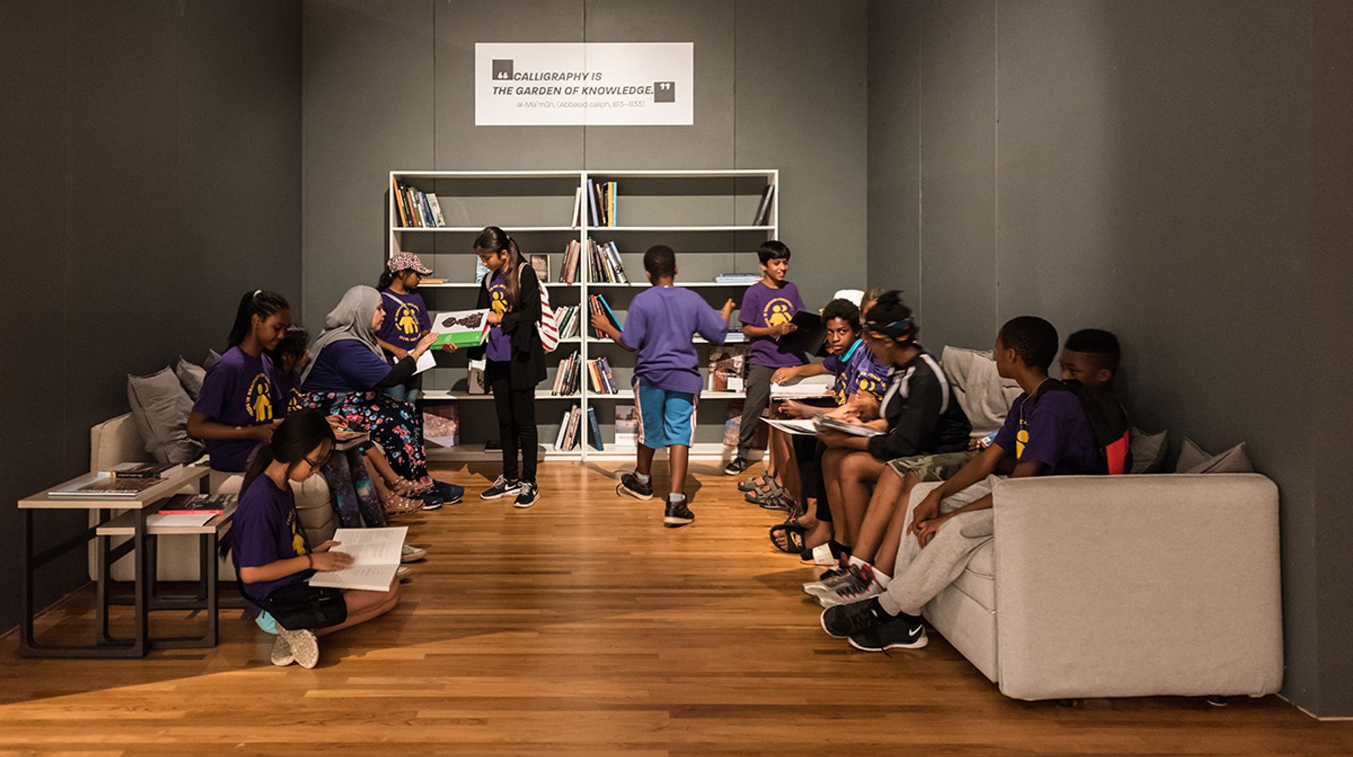 Children look through art books in another part of the exhibition at the Aga Khan Museum Photo: Aly Manji