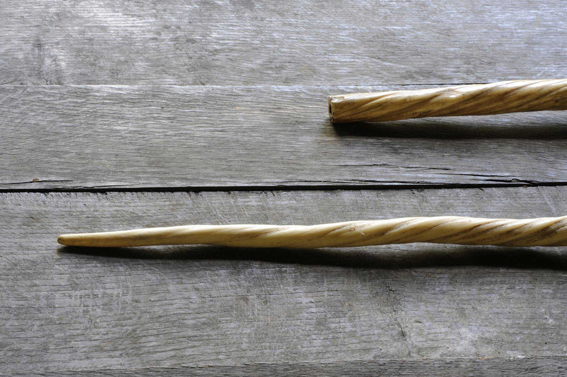 Two "unicorn" horns, which are actually narwhal tusks from the 13th–15th century © New College, University of Oxford