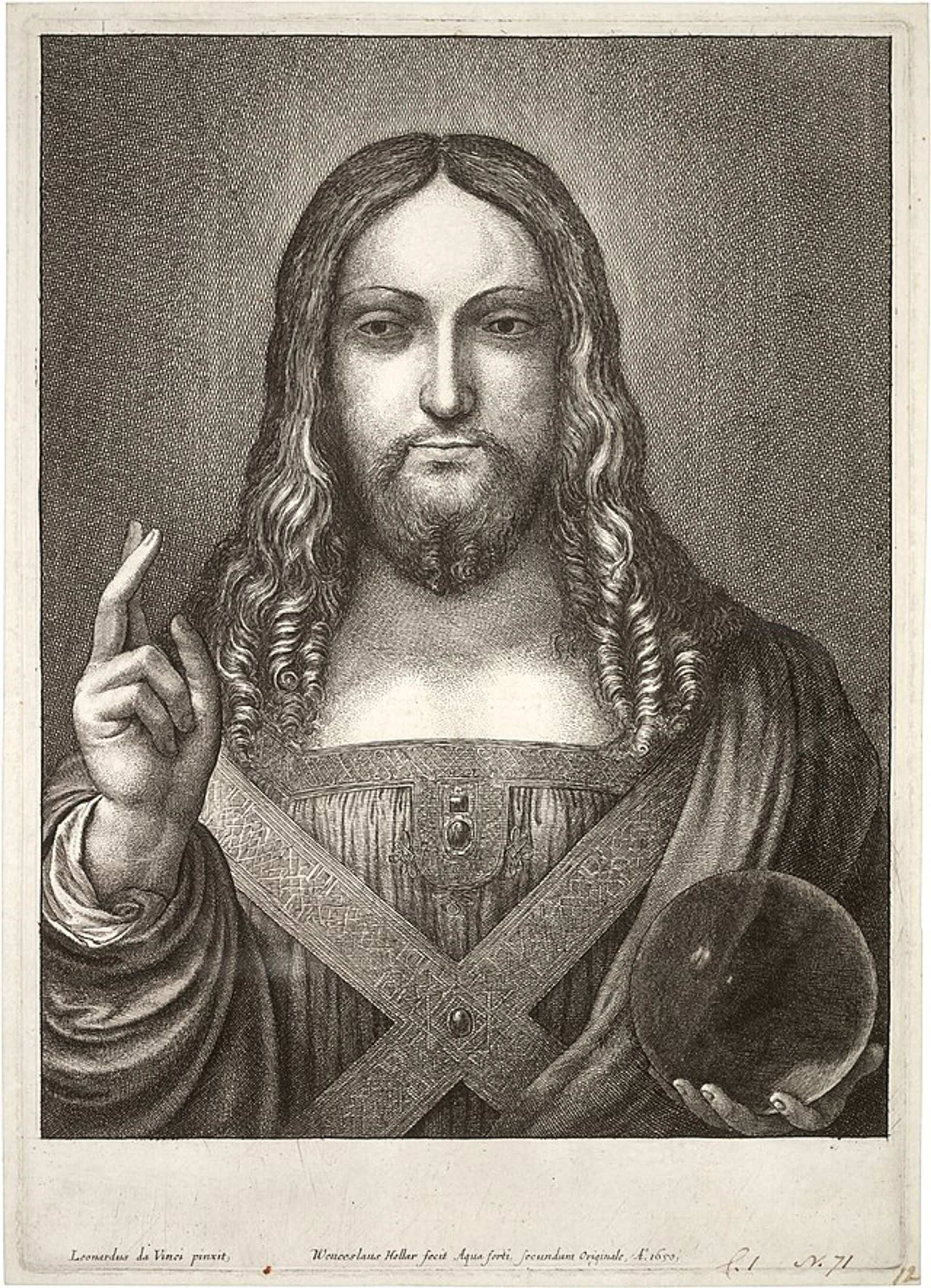 Wood and Dalivalle have also discussed other possible hypotheses. One is the crucial role played by an etching of Leonardo’s Salvator Mundi made by the Royalist Wenceslaus Hollar—then living in exile in Antwerp—which is inscribed (in Latin): “Leonardo painted it” and Hollar etched it “from the original” in 1650. After James Hamilton’s execution in 1649, his brother, the 2nd Duke, transported a large portion of his collection to the Netherlands to be sold. Could Hamilton’s Salvator Mundi have been part of this consignment, and could this explain the “how and the why” Hollar etched it “from the original” in Antwerp at that precise time? (Indeed, in 1649 and 1650, Hollar made a number of etchings after Italian paintings that were available to him in the original.)