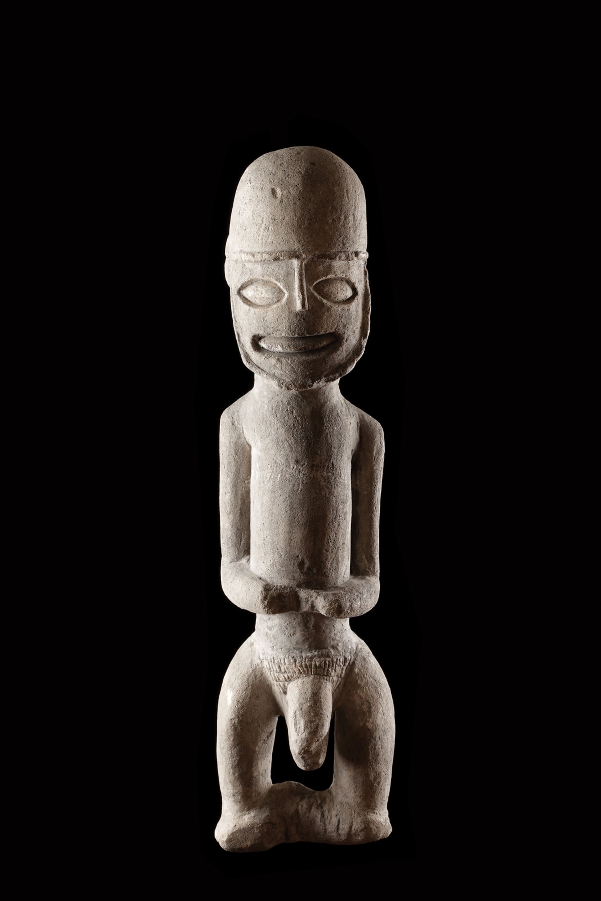 Limestone kulap figures, such as this, were a peculiarity of New Ireland (in the Bismarck island chain off the coast of New Guinea) until the early 20th century. They were made as a temporary home for the spirits of the recently deceased, to prevent restless souls running amok among the living. Placed in a shrine, they would later be broken up and the spirit released. This one, from the Namatanai area of New Ireland, which will be exhibited by Finch during Paris’s tribal gallery trail, Parcours des Mondes, survived intact. Believed to have been collected by Wilhelm Wostrack, who imposed German rule over parts of New Ireland between 1904 and 1910, it was subsequently in the Linden Museum in Stuttgart.