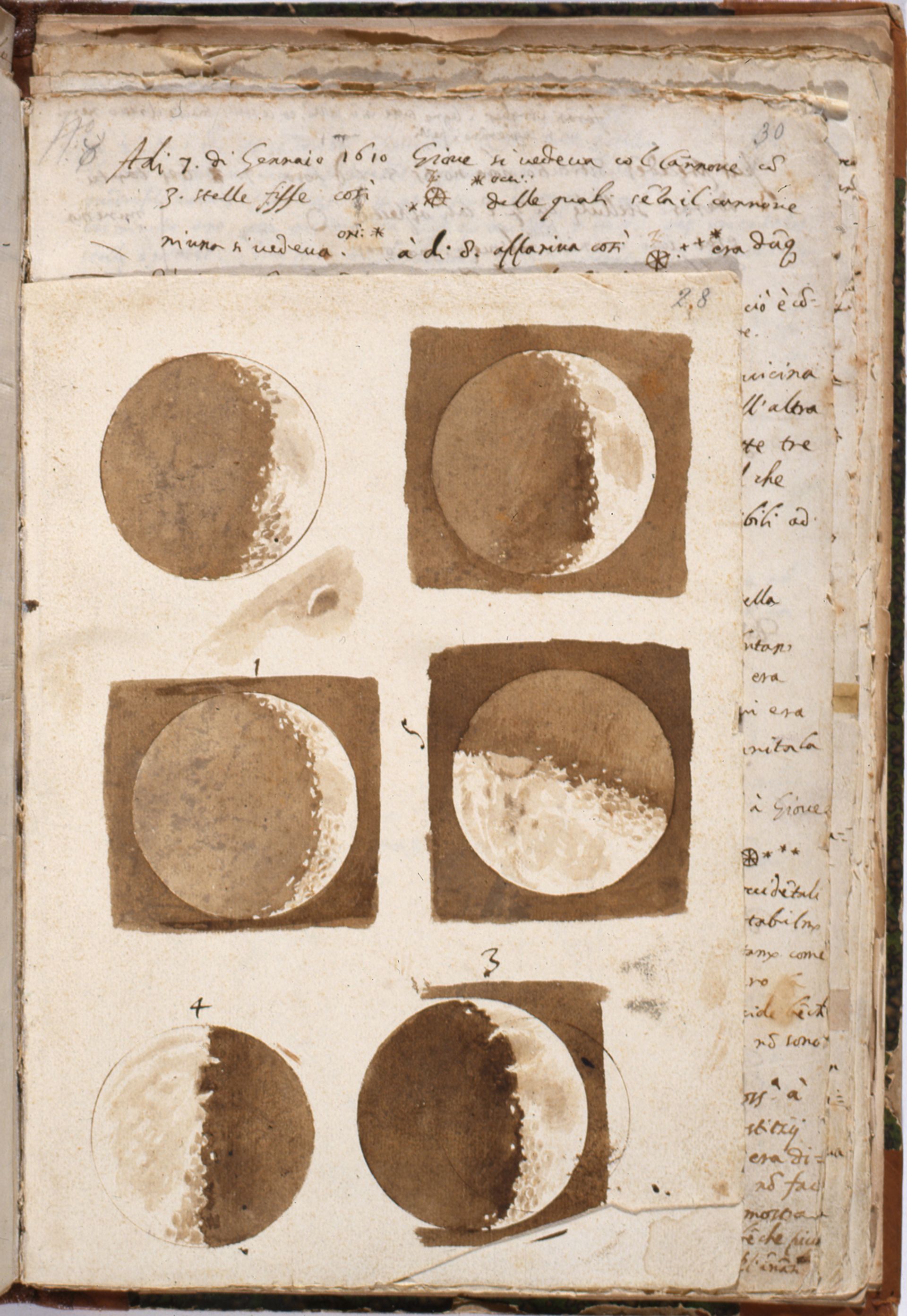 “Galielo Galilei is regarded as the founder of modern astronomy, and his book Sidereus Nuncius (1610) is the first published book about the moon based on telescope observations. This unique manuscript is Galilei’s original, handwritten text with watercolour illustrations, on which the book was based. It is on loan from the national library in Florence.” Galileo Galilei’s manuscript for Sidereus Nuncius (1610)