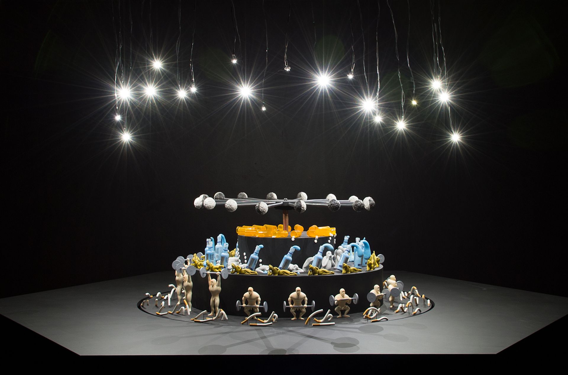 “Camille Henrot’s October 2015 Horoscope (2015), a fantastic and playful installation, deals with the psychological conditions of contemporary society and how yoga and drugs are deployed to put the mind at ease. The installation draws on the age-old idea of the moon’s ability to drive you mad—as reflected in the word ‘lunatic’, which derives from the French word for moon: lune.” Camille Henrot’s October 2015 Horoscope (2015) [© Camille Henrot]