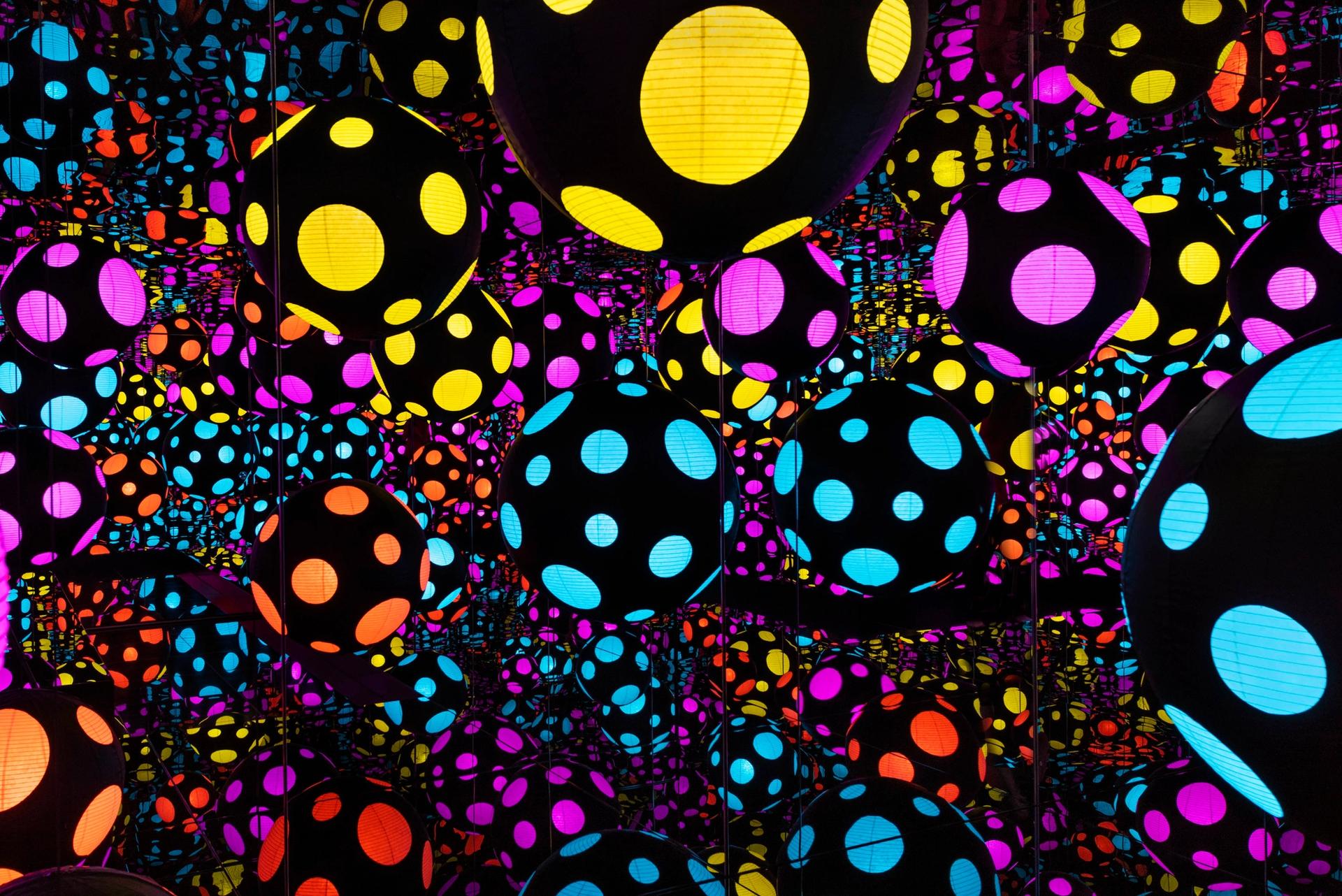 Yayoi Kusama's Infinity Mirrored Room - My Heart is Dancing Into the Universe (2018). Courtesy Ota Fine Arts, Tokyo/Singapore/Shanghai and Victoria Miro, London/Venice. © Yayoi Kusama