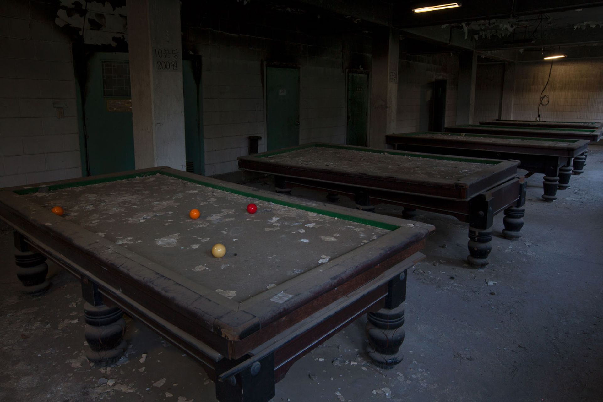 Additionally, the derelict Former Armed Forces’ Gwangju Hospital and nearby chapel, situated within a memorial park, present site-specific commissions. Apichatpong Weerasethaku's installation Constellations, ghostly movements in the public spaces of the decaying hospital, was still being installed at the time of the opening. Mike Nelson's Mirror reverb (the blinding of a building, a notation for another) consists of time-worn bathroom mirrors, emblazoned with hygienic and sometimes political exhortations, removed from the hospital and hung at varying angles around the small abandoned chapel's theatre-like hall, creating a literal temple of reflection.