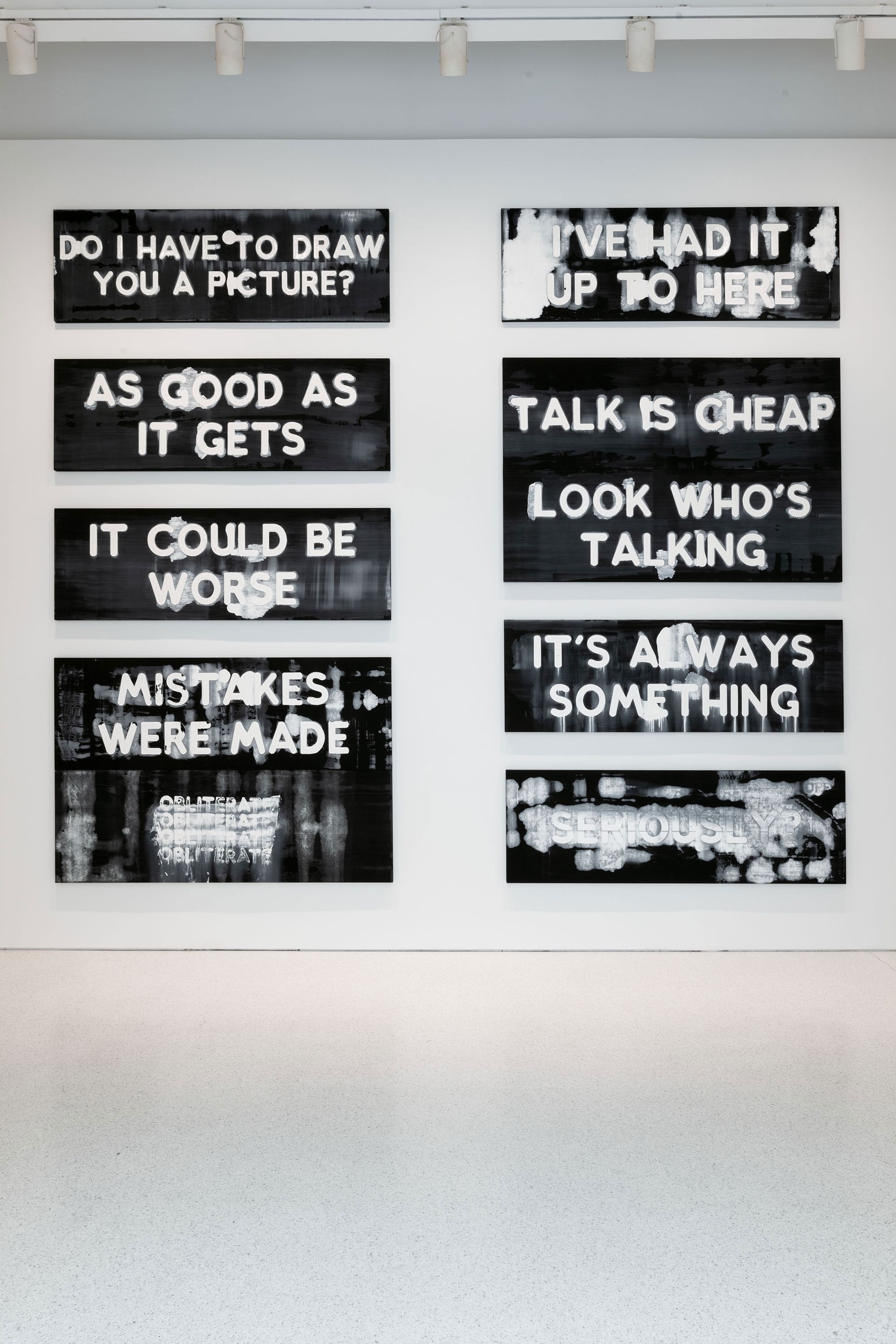 Installation view of Mel Bochner's text painting at the 57th Carnegie International Photo: Bryan Conley. Courtesy the artist and Peter Freeman, Inc., New York/Paris