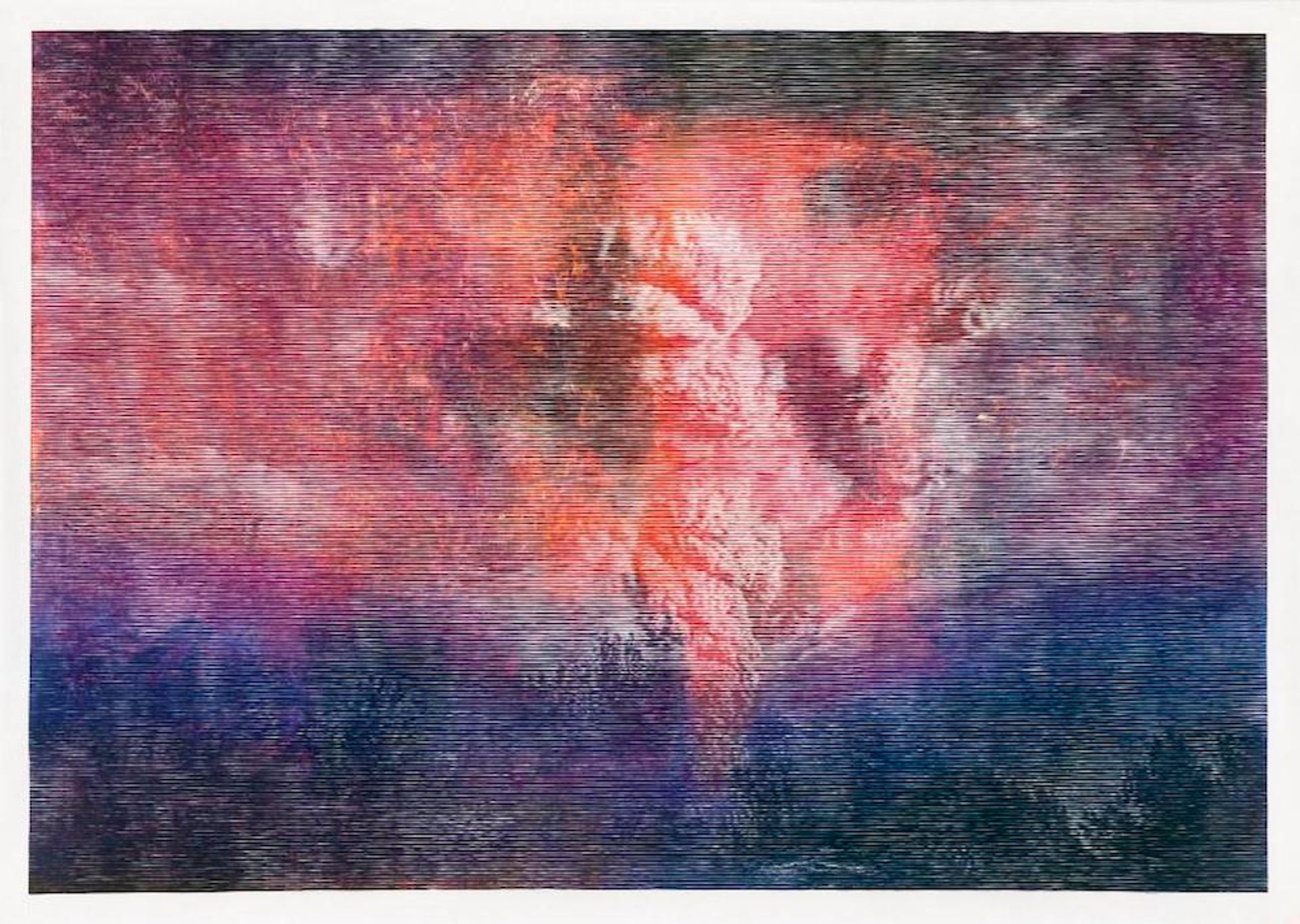 The London-based dealer Alan Cristea is offering a series of large-scale prints by the German artist Christiane Baumgartner, who is best known for creating woodcuts based on videos and photographs that evoke the effect of static on television screens. Much of the artist’s work is presented in groups and depicts the same scene captured moments apart, says the gallery. In this vibrant work, titled Phoenix (2018) and made of woodcut on Kozo paper, Baumgartner experiments with a found photograph of a billowing plume of smoke rising from a volcano. The piece, from an edition of six, is priced at $35,000 unframed. The artist currently has a solo exhibition at the Davis Museum at Wellesley College and will hold a conversation on Saturday (27 October) as part of the fair’s programming. Alan Cristea
