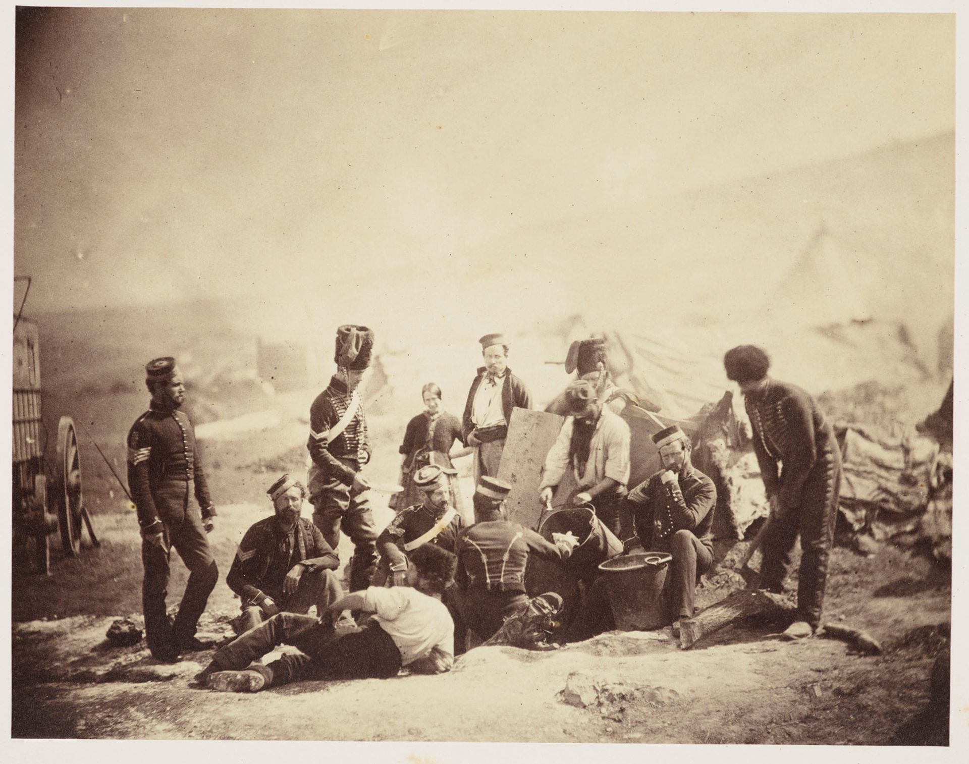 Now considered one of the first war photographers, Fenton was in fact commissioned to travel to Crimea to create an extensive photographic record of senior officers, to be used as source material for a large history painting by Thomas Jones Barker, made to be commercially reproduced as a mezzotint. Many of the major battles had already taken place by the time Fenton arrived in 1855, and because of the technology available his photographs do not show action, but are predominantly posed portraits and desolate landscapes.
