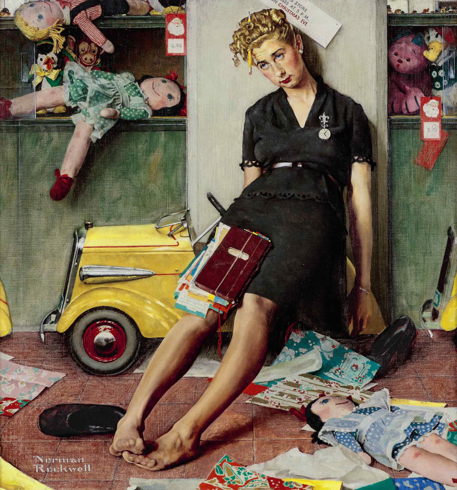 Norman Rockwell's Tired Salesgirl sold for $4.3m, below its low estimate. Sotheby's