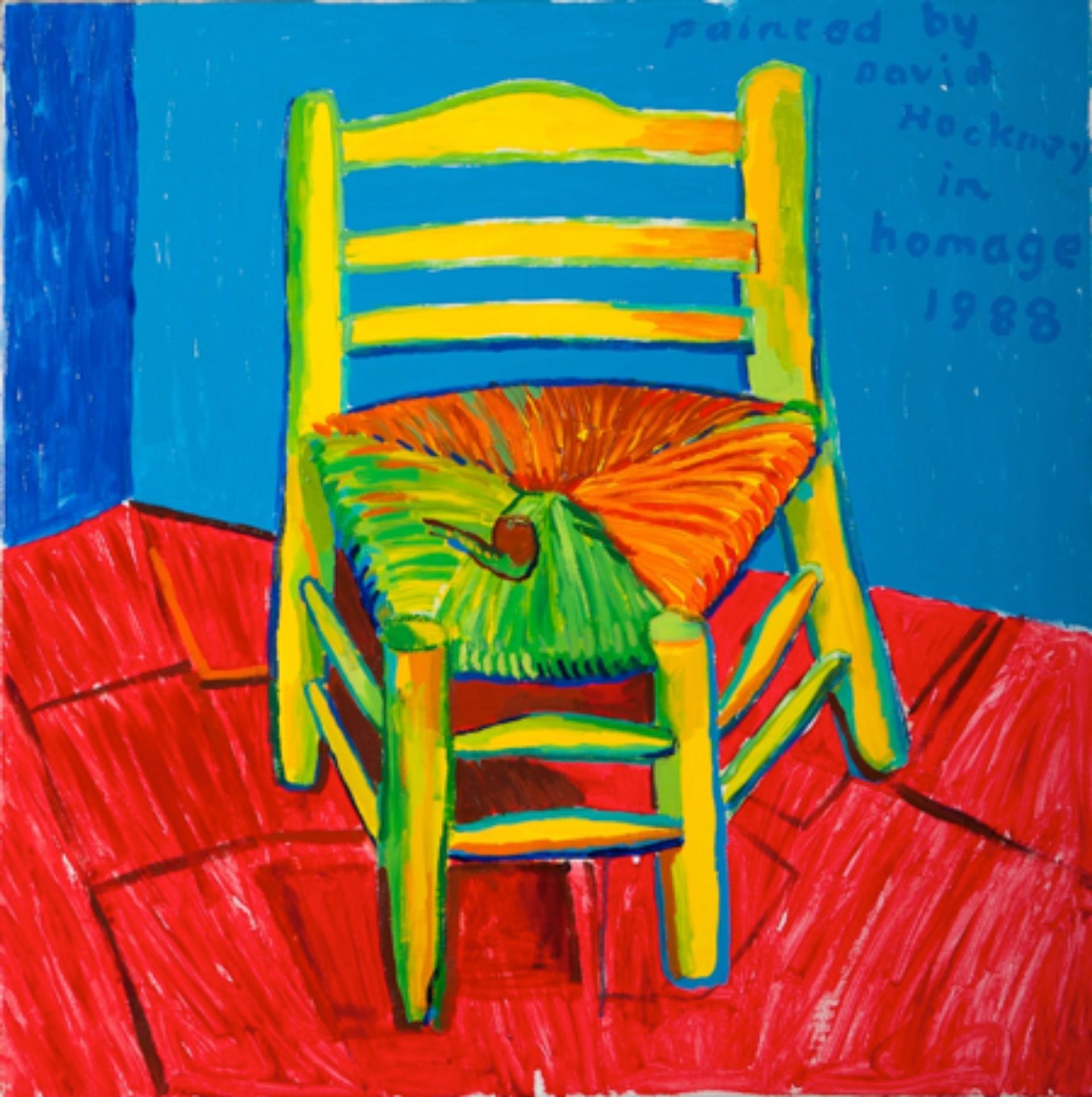 David Hockney, La chaise et la pipe de Vincent 1888 (1988), Yolande Clergue de la Fondation Vincent van Gogh Arles © David Hockney. Courtesy the Fondation Vincent van Gogh Arles
