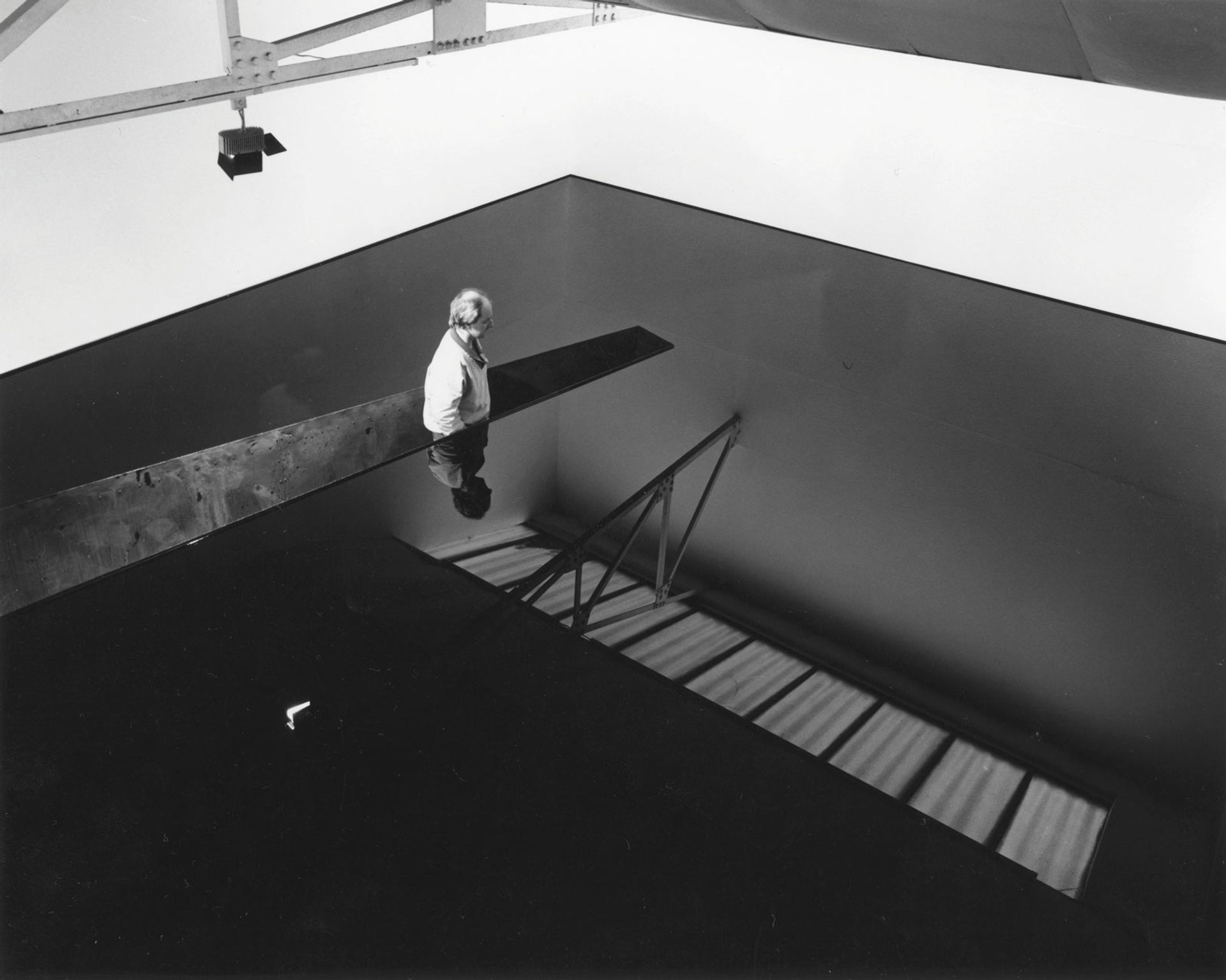 Richard Wilson in his installation of 20:50 (1987)