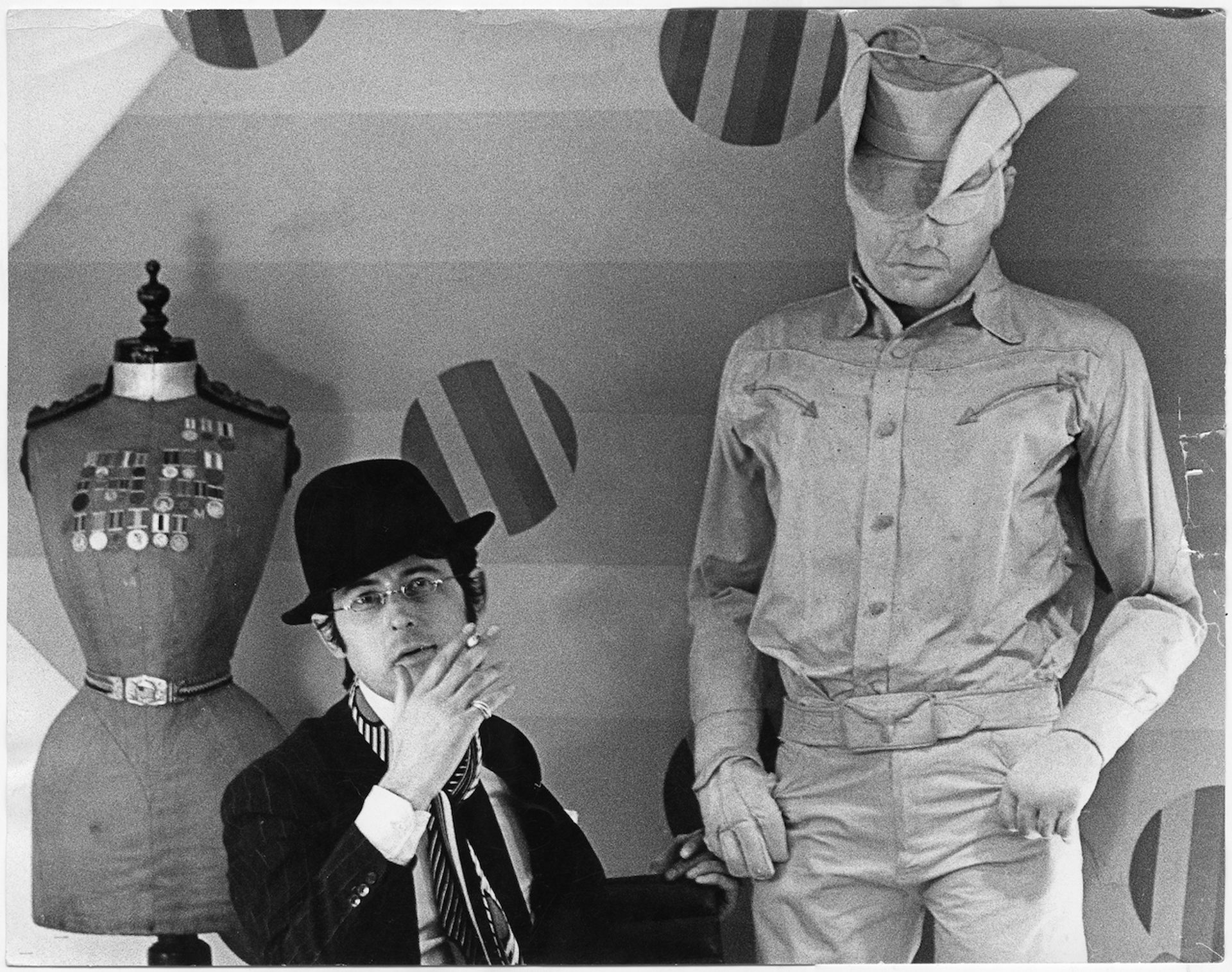 Robert Fraser at his gallery in 1966 with Jann Haworth’s Cowboy (1964) © Hans Hammarskiöld. Courtesy of Pace London