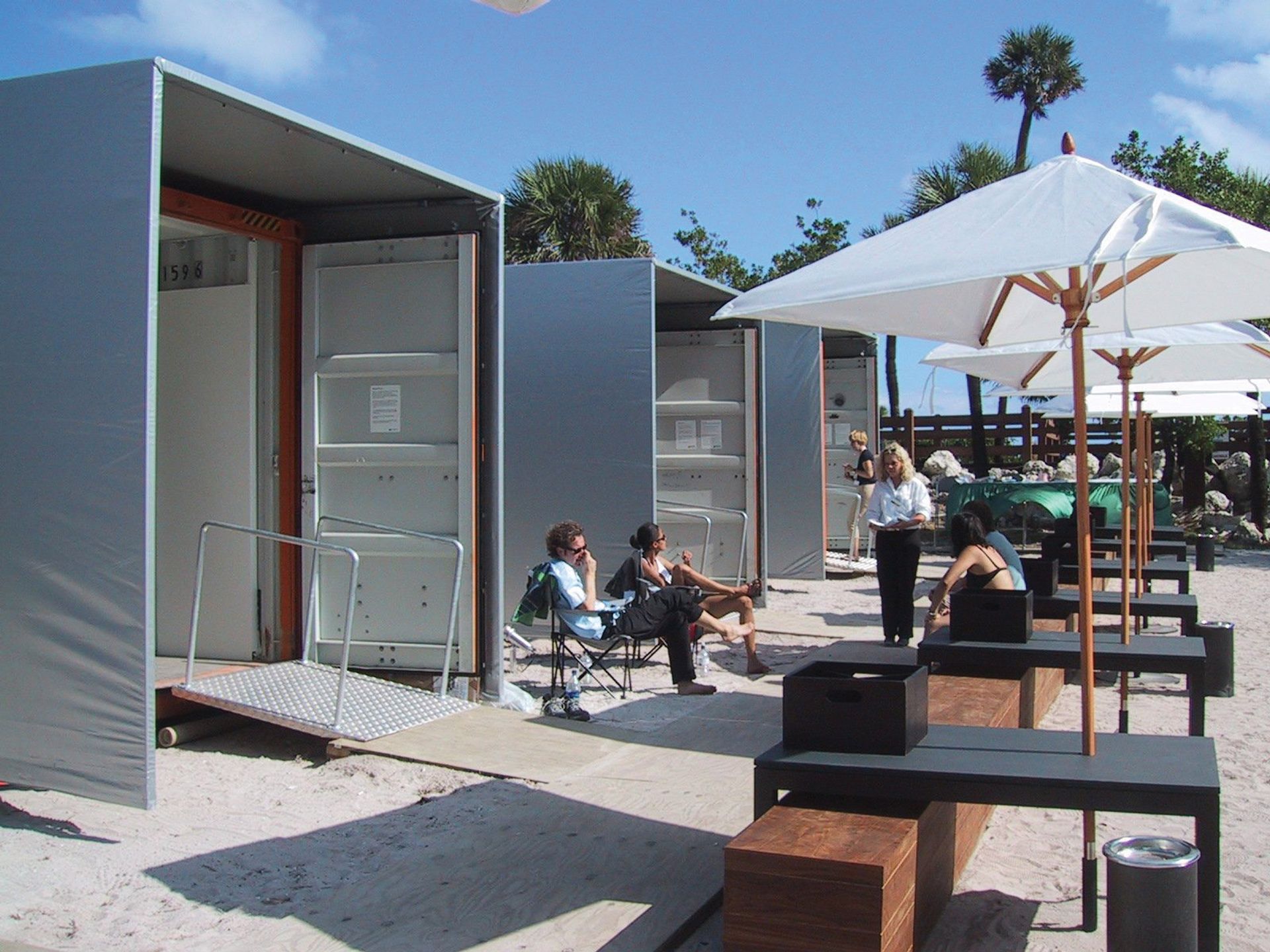 The shipping-container exhibition spaces from the Art Positions sector of the first Miami Beach show Photo: Art Basel