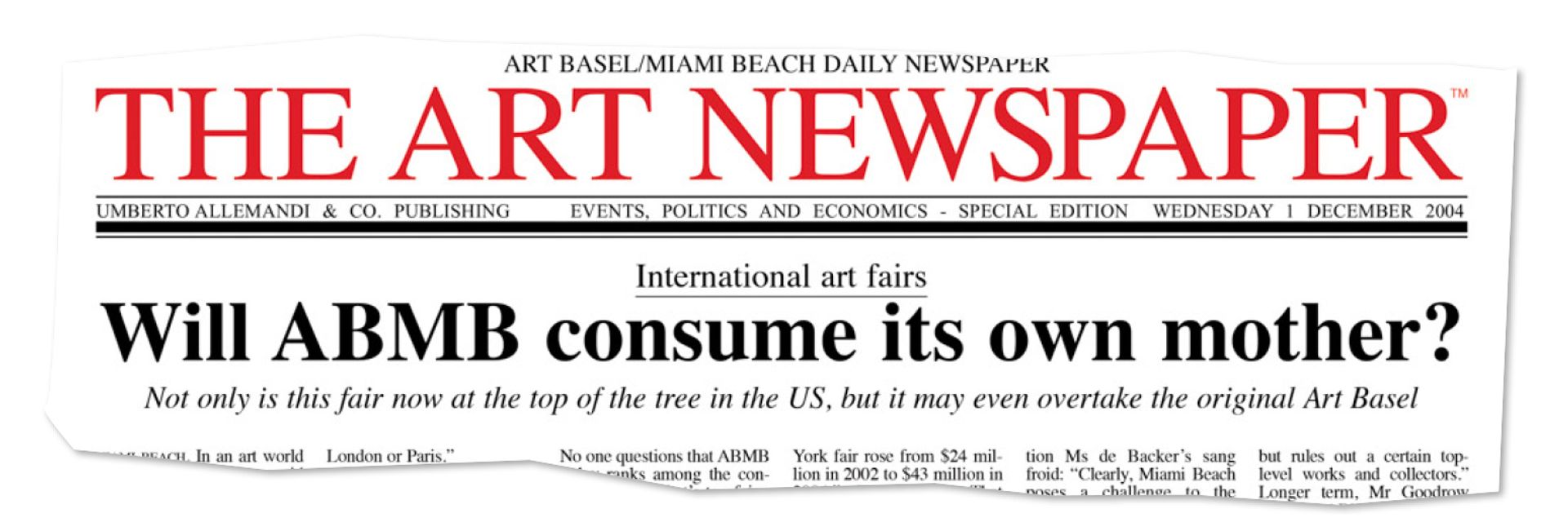 Here is a selection of some of the headlines from our very first set of Art Basel in Miami Beach daily papers published back in 2004.