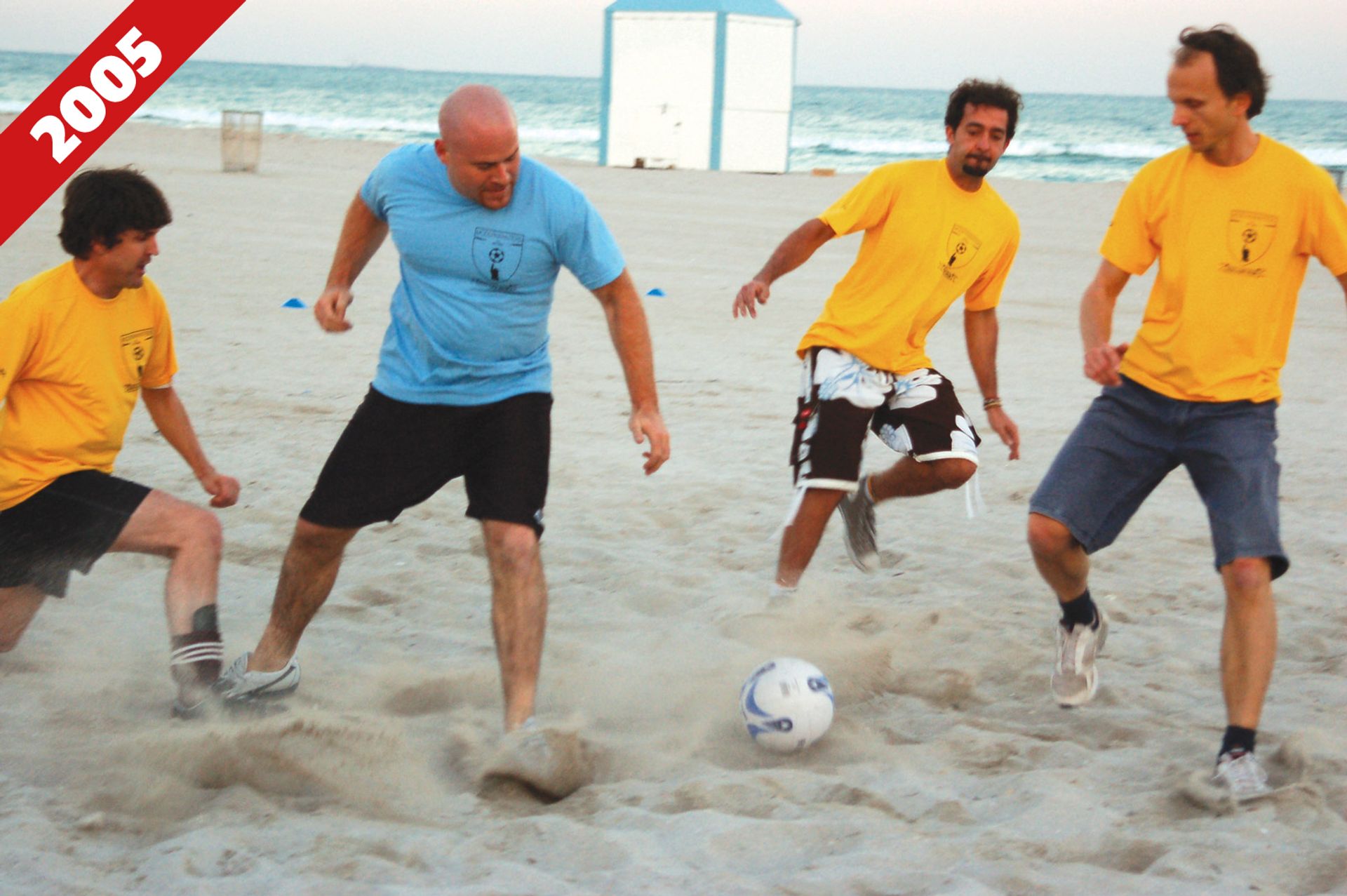 From the fair's director Marc Spiegler playing football on the beach to the collector Jorge Pérez getting a lift from rapper Wyclef Jean, some of our favourite images from the archive