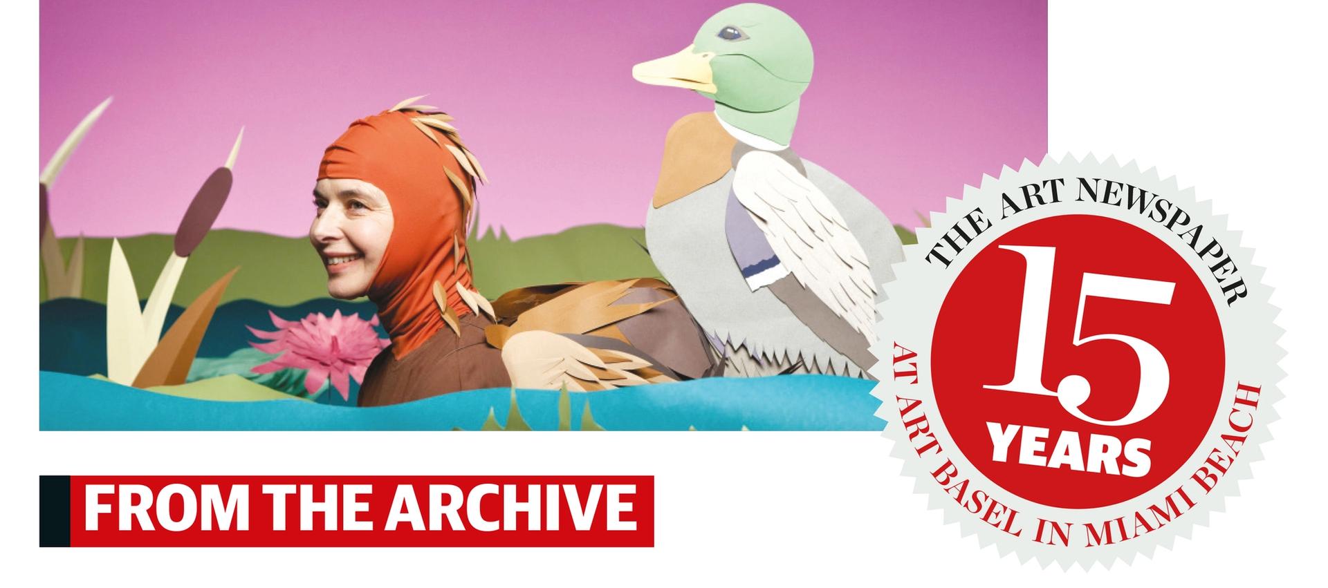 Dolphins do it every which way, spiders enjoy a bit of bondage,and Noah’s Ark must have been a menagerie of hermaphrodites, transgendered folks and homosexuals. Or so the grand dame Isabella Rossellini reveals in her five most recent short films. Part of Seduce Me and Green Porno, her saucy series on the sex lives of animals, the videos feature crafty sets and costumes designed by the artists Andy Byers and Rick Gilbert. Byers said that working with Rossellini was a treat. “She let me do what I wanted. I’d say: ‘I want to put you in a leotard’ or a silly hat and she’d say: ‘Great’. I’d say: ‘We need to plug a vagina with something; let’s use a cork’ and she’d say: ‘Yes, perfect.’”