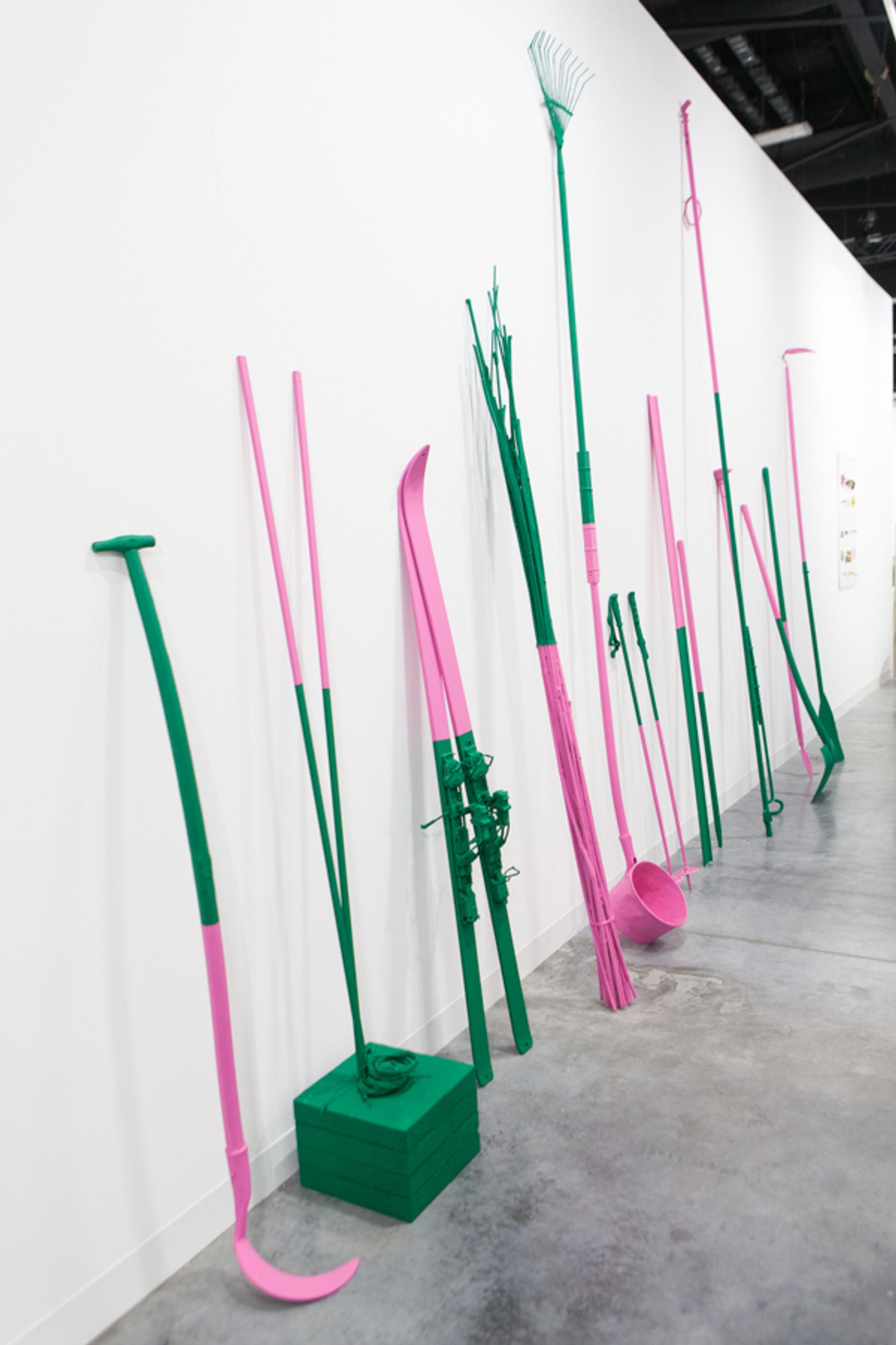 “This work is a piece from the artist’s Autorreconstrucción performance at the Kunsthalle Zürich this year, which, like his performance for Art Basel in Miami Beach, had suspended installations made of locally found objects,” Kaiser says. This iteration includes “very Swiss things”, such as gardening tools and skis. The curator adds that Cruzvillegas “bases his sculptural practice around metaphors on social conditions—every place it is installed, there’s a different story”. Abraham Cruzvillegas, Autokonßtrukschön #14 (2018). Photo: © Vanessa Ruiz