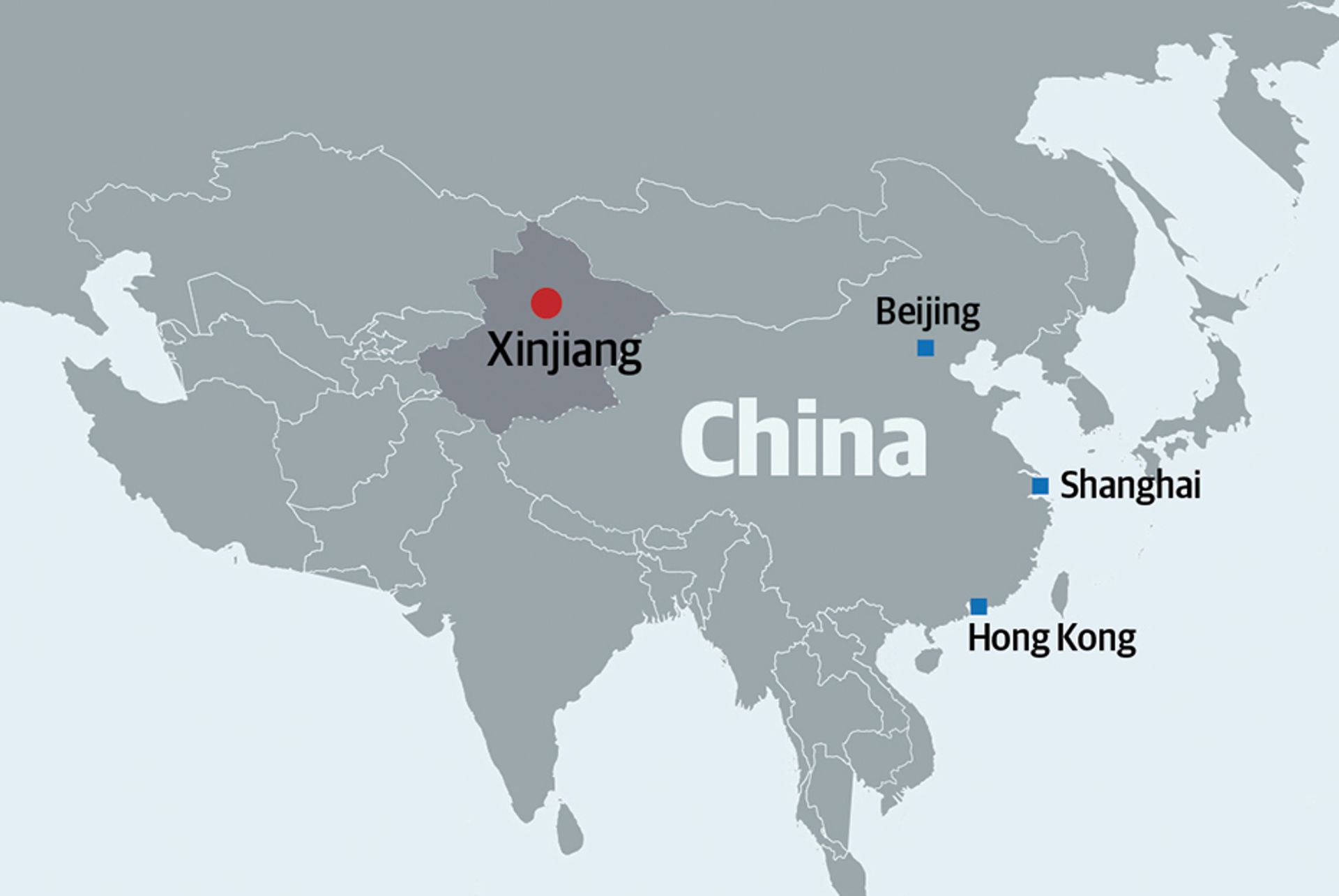 One million Uyghurs are believed to be in Xinjiang's "re-education" camps © Free Vector Maps.com