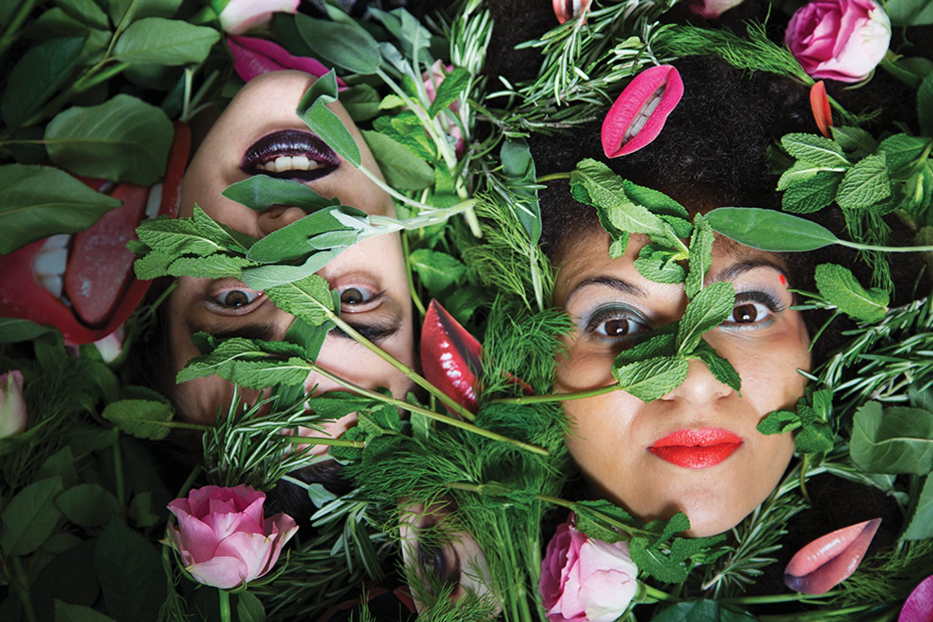 “Last year the Glasgow Women’s Library invited me to create their inaugural flag and an accompanying film,” says Linder. “At the same time, I was artist in residence at Chatsworth, where Mary Queen of Scots was once held prisoner. I became intrigued with Mary’s biography as a cipher for women’s creativity and ingenuity under times of duress. The Bower of Bliss was filmed in Queen Mary’s Bower at Chatsworth and the film is being looped in the foyer of the Glasgow Women’s Library for 12 months… a decompression chamber to help visitors pause as they enter and savour the moment. The flag depicts women’s mouths open wide to disseminate and receive. Bliss is a feminist issue.”