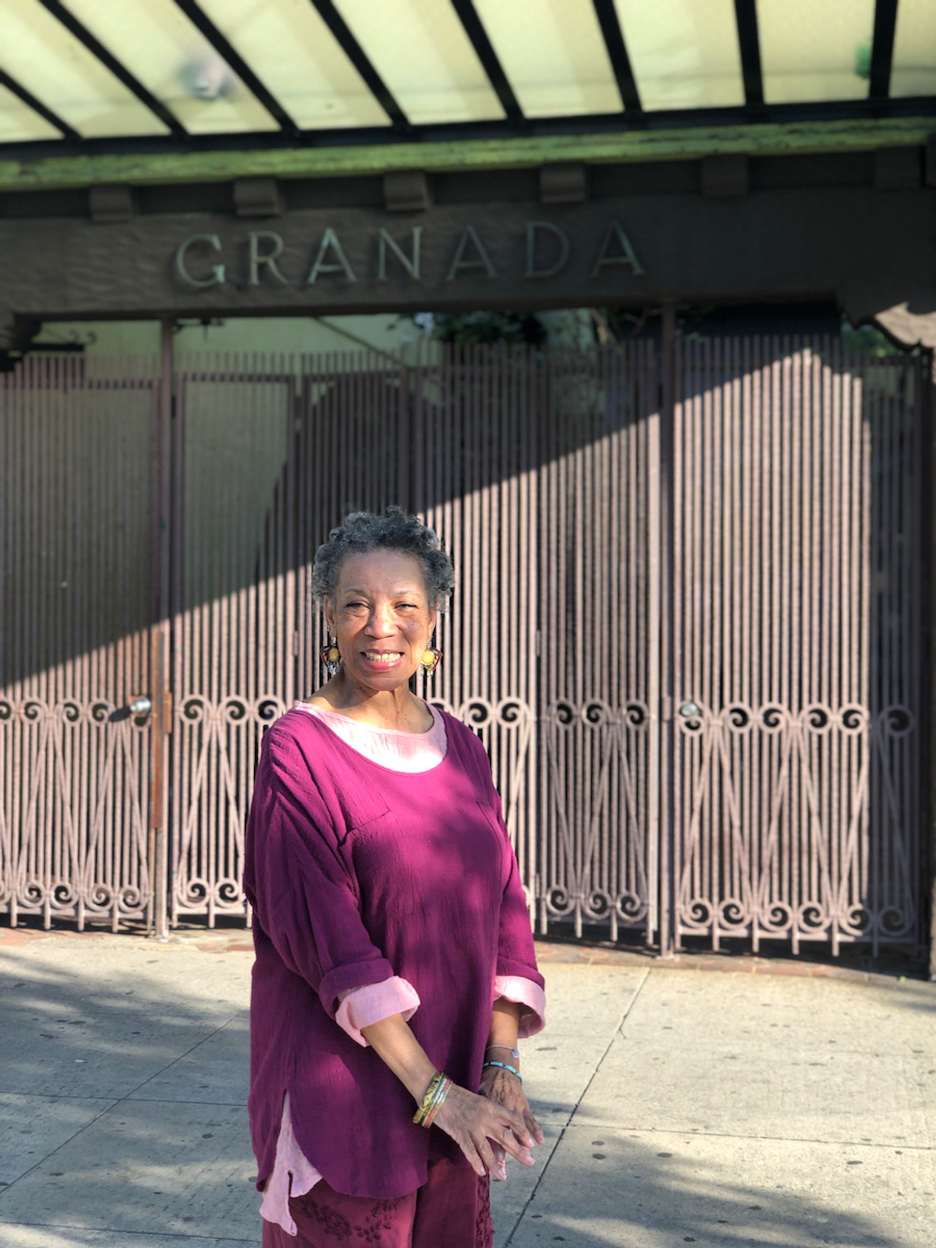 In 1968, the artist Suzanne Jackson opened Gallery 32 in the Granada Buildings, a strange old complex of Mediterranean and Spanish Colonial Revival architectural oddities built in the 1920s off of Wilshire Boulevard in Koreatown. She put together shows with future legends such as David Hammons, Betye Saar and Emory Douglas. Fifty years later, the independent curator Scott Cameron Weaver opened O-Town House in the Granada—now behind a Chuck E. Cheese. He’s given over his space to Jackson, who now lives in Savannah, Georgia, to show a series of new paintings, as well as ephemera (flyers, grocery lists) from the Gallery 32 days. “I don’t know I would say it was ‘influential’,” Jackson said bashfully at the opening last weekend, wearing a purple dress in front of her new purple abstract works. “I would,” interjected her friend. “Don’t let her modesty fool you.”