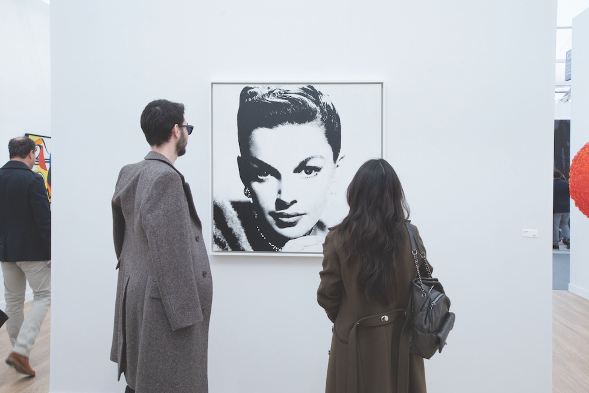 The glamorous face of Hollywood can be seen at Pace gallery, which has a black-and-white painting of Judy Garland by Warhol (works on the stand range from around $10,000 to $4m), while dealer Thaddaeus Ropac has designed his stand around a “Californian road trip theme”.