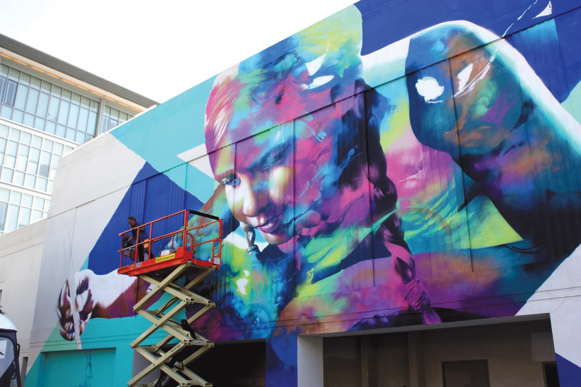 “Everyone drives here—the billboard is the image that is visible as you go rushing by at 50mph,” Deitch says. “It’s a completely different visual culture to London or New York, and these murals really fit in with that.”