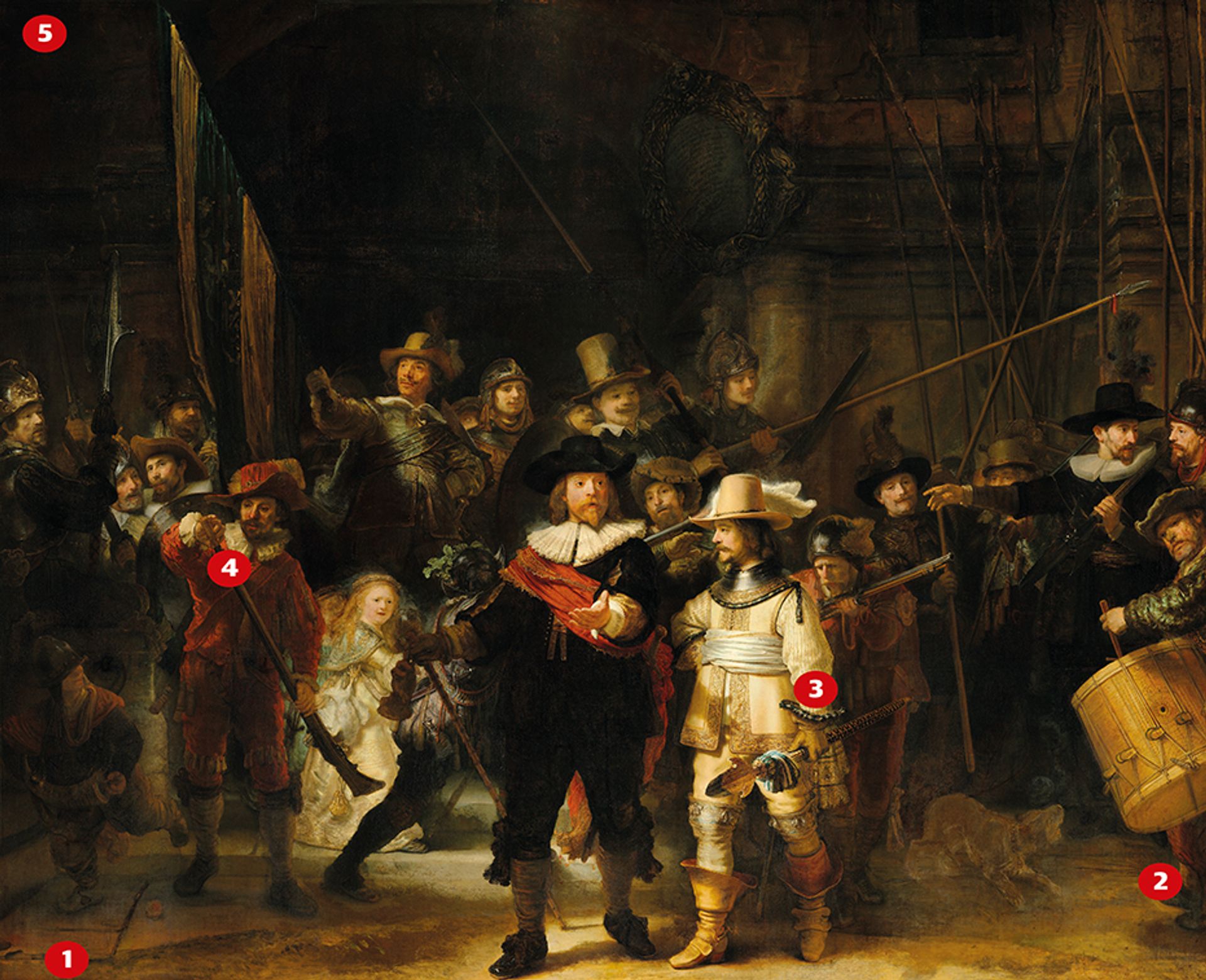 Rembrandt Harmensz van Rijn, Militia Company of District II under the Command of Captain Frans Banninck Cocq, known as the Night Watch (1642) Courtesy of the Rijksmuseum