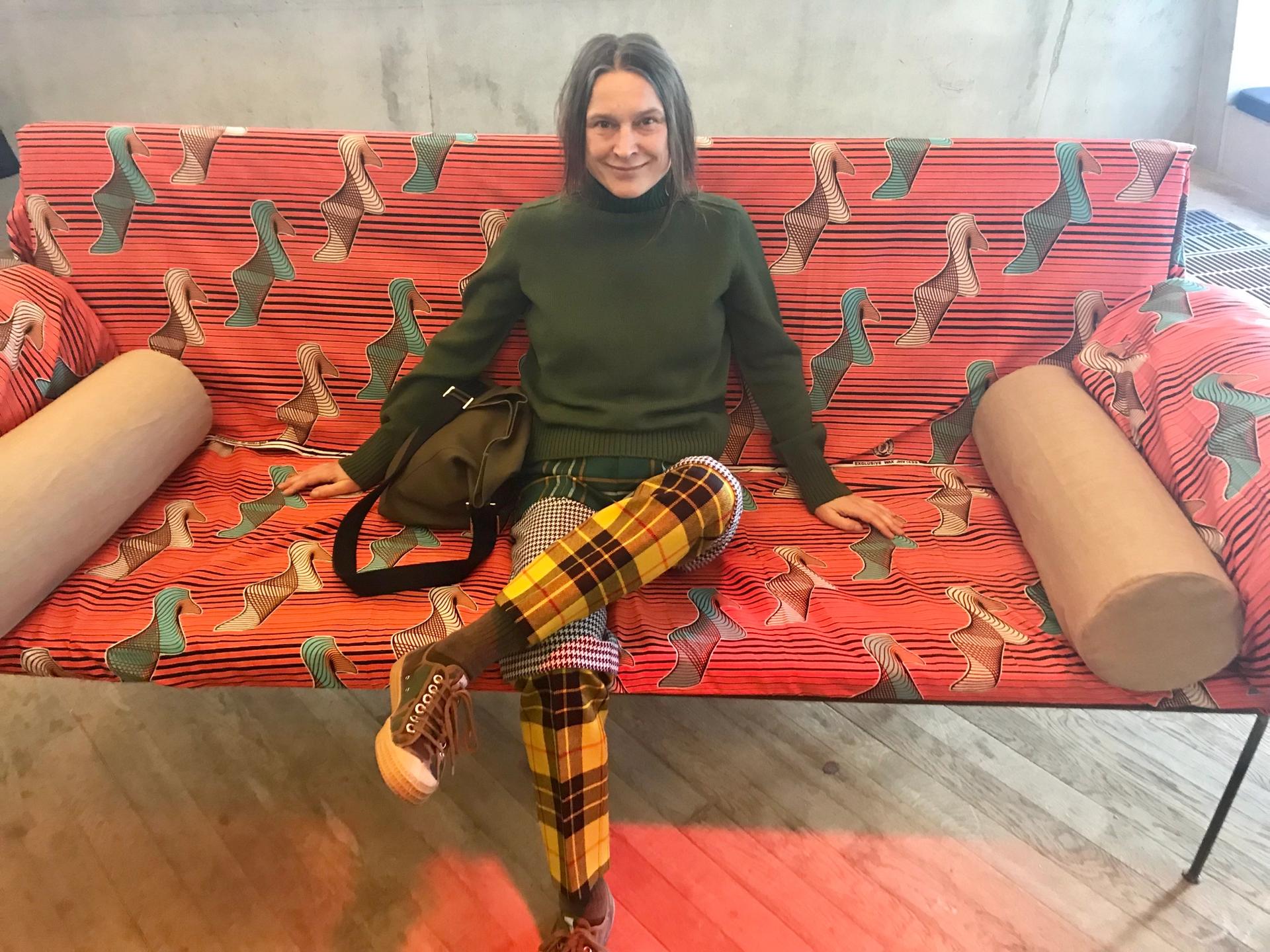 Sarah Lucas on Franz West's sofa Courtesy of Louisa Buck