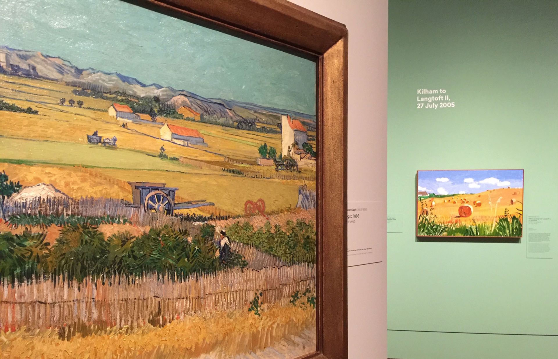 Van Gogh’s The Harvest and Hockney’s Kilham to Langtoft II, 27 July 2005 in the Van Gogh Museum exhibition © Martin Bailey