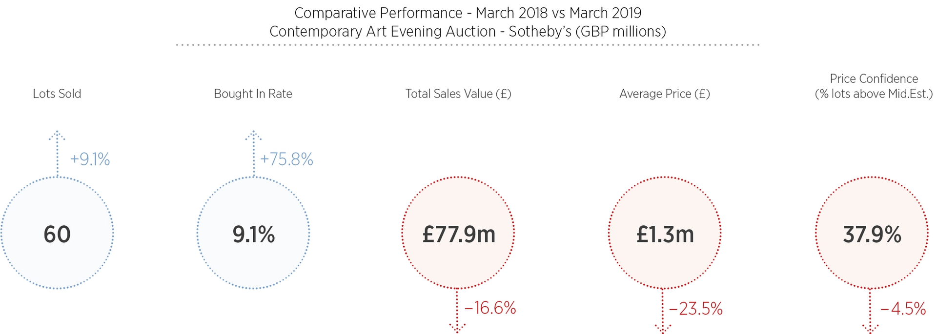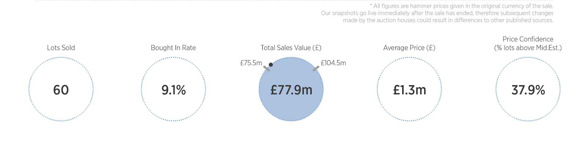 The average lot price was £1.3m hammer last night according to ArtTactic's research Courtesy of ArtTactic