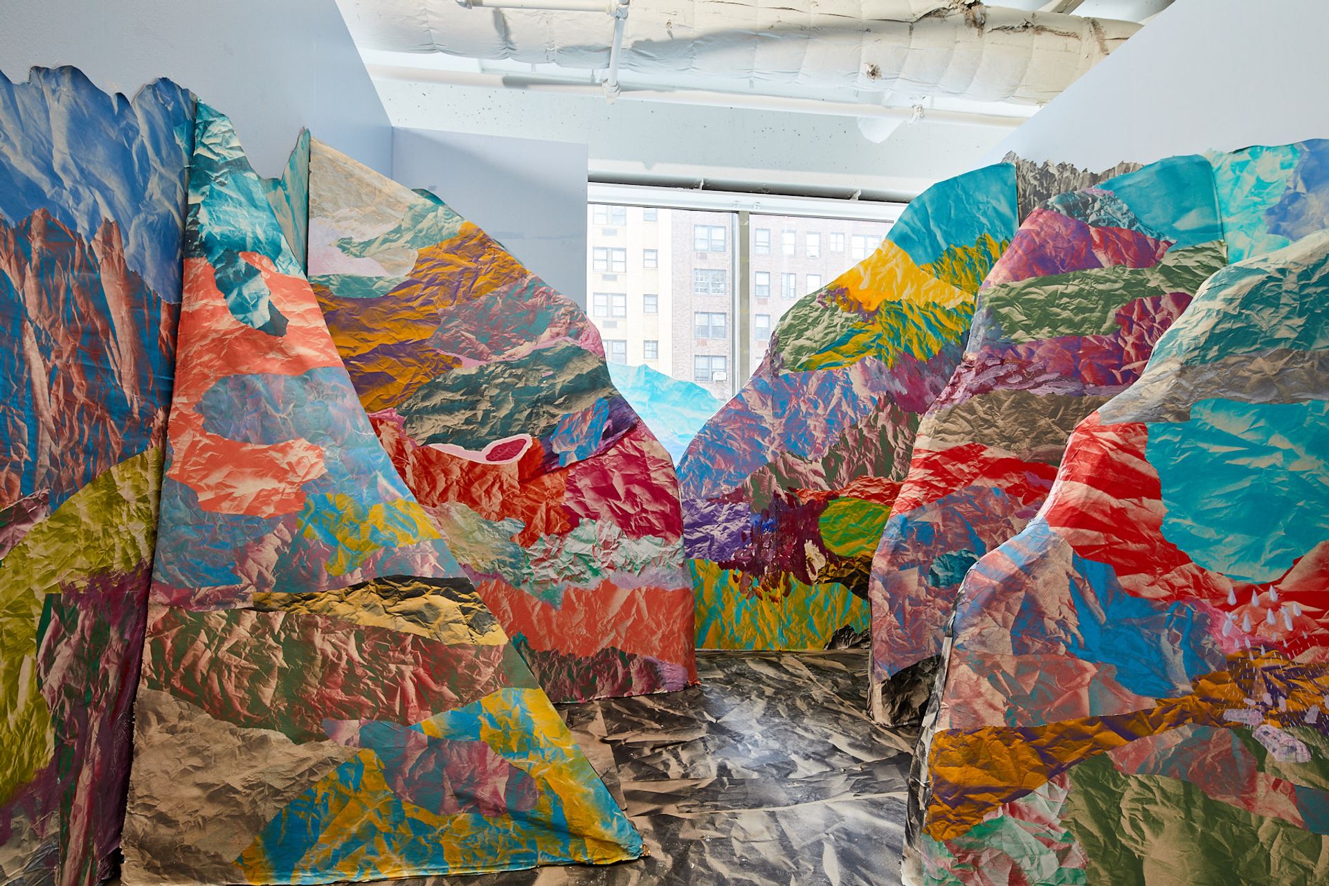 Pajtim Osmanaj, a Kosovo-born artist who came to the US in 2013, based this vivid installation on his experience as a political refugee when he was eight years old. As the artist travelled to Montenegro on foot in the late 1990s, he had a “child-like perspective of the excursion, thinking it was this fun trip that he and his family were going on—like a crazy camping trip”, says the curator, Sarah Sunjean Han. “A lot of people know what happened in Kosovo around that time but it doesn’t settle in as a real experience that people alive now have lived through, and that others continue to live through”. The textured mixed-media sculptures “create a little bit of a trompe-l'œil but can also remind you of Japanese woodblock prints”, says Han. The individual pieces are priced at around $5,000, with flat framed pieces (not shown at the booth) starting at around $1,500. Pajtim Osmanaj, curated by Sarah Sunjean Han. Photo: Samuel Morgan Photography