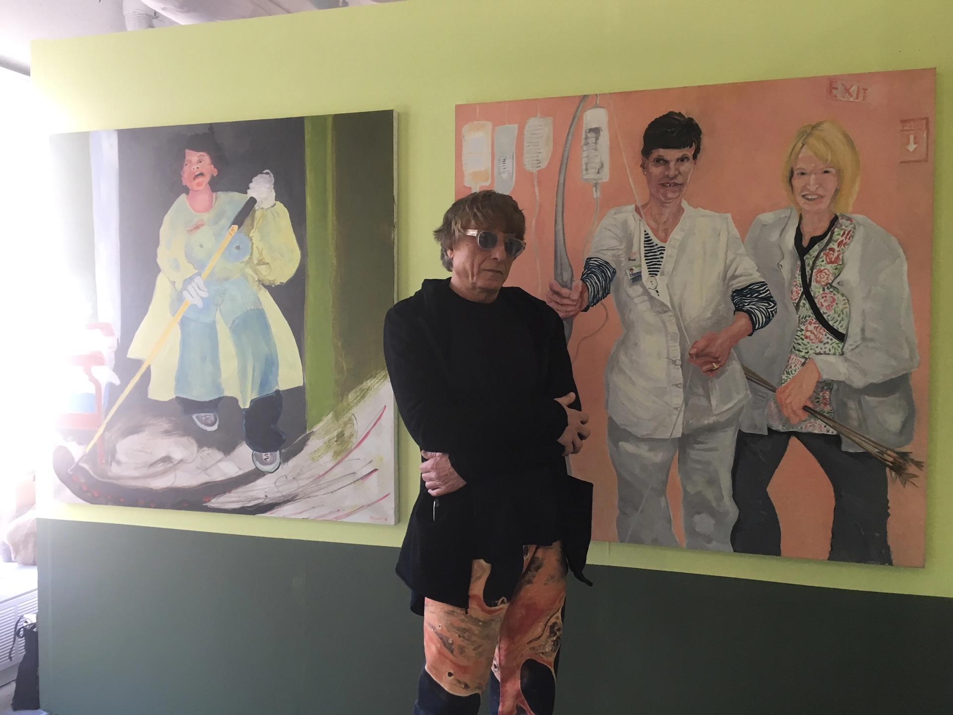 The series of six large-scale oil paintings, brought together by the “Piss Christ” artist Andres Serrano, is titled after the psychiatric centre Pilgrim State Hospital in Brentwood, New York, which was known as the largest and most populated hospital of its kind at its peak in the 1950s. Taking the point of the view of the patient, the artist imagines both the beautiful and menacing hallucinatory environments and caregivers that existed within the hospital’s microcosm. The series reflects on the thin veil between sanity and insanity and “can also be seen as a reflection on our political state right now, which is all made up of lunatics”, says the artist. The works range from $3,500 to $9,000. Jeff Bliumis with his work Pilgrim State, curated by Andres Serrano.